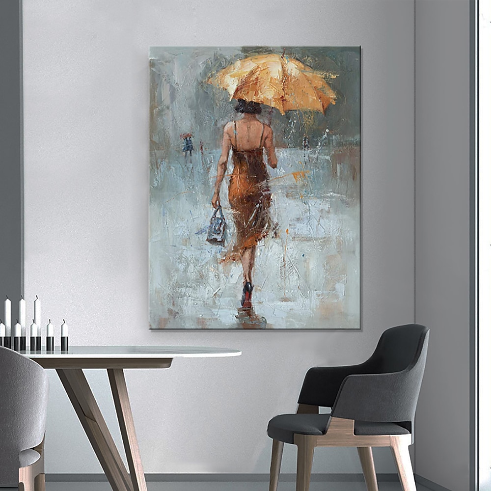 Handgefertigtes Ölgemälde Auf Leinwand, Wandkunst, Dekoration, Figur, Porträt, Frau Mit Regenschirm, Für Wohnkultur, Gerolltes, Rahmenloses, Ungedehntes Gemälde 2025 - $74.99
