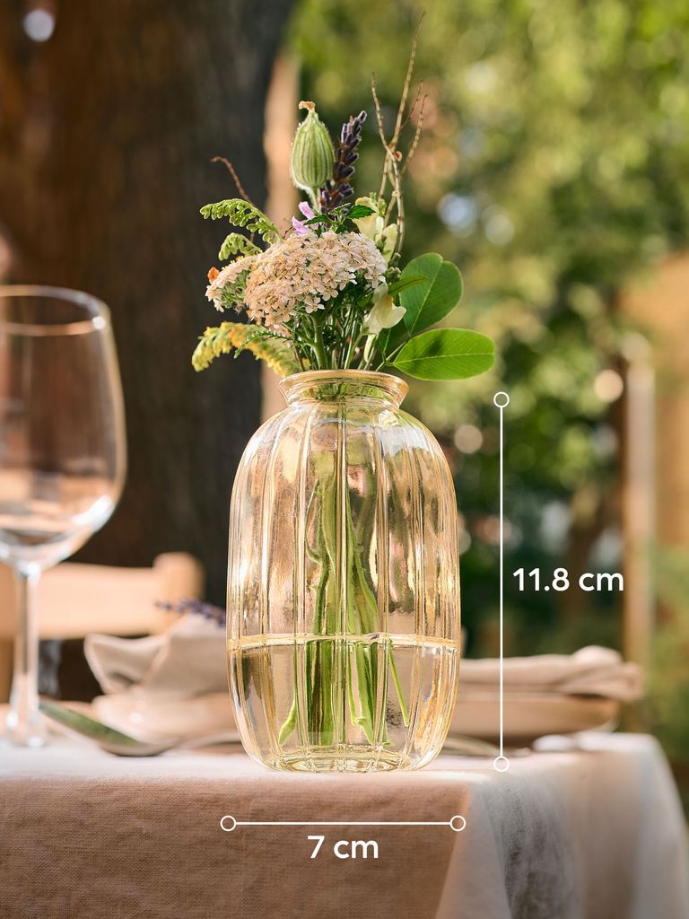 QUVIO Vase für Trockenblumen - Vasen - Klassisch oder im Landhausstil - Vase mit Goldrand - Wohnaccessoires für Blumen und Sträuße - Dekoratives Zubehör - Glas - 11 x 22 cm (dxh) - Gold Die Blumevase mit Goldrand eignet sich nicht nur hervorragend als Tischdeko auf dem Esstisch. B gefüllt mit buntem Sand oder Steinen kann eignet sich sich perfekt. Sicher abstellen lassen sich die Deko-Übertöpfe aus Beton auf den bereits angebrachten Schonern aus Kunststoff. Das Wiesenblumen-Relief macht den Beton-Blumentopf gerade für Liebhaber des Landhausstils interessant. Diese Vase kleine bietet für jede Gelegenheit die perfekte Optik. Flaschen Deko Glas Mini Vasen mit Metalltablett 11,5cm Auch als Hochzeitsdeko ist sie ein echtes Highlight. Bitte schreiben Sie uns DIREKT nach dem Kauf die gewünschte Variante. 1 Stück in einer Ausführung nach Wahl. Auf einer Vintage-Anrichte oder zu einer Shabby-Chic-Tischdeko passen die beiden Übertöpfe aus Beton gut dazu. Vasen Mit Goldrand Günstig Porzellanteller Mit Goldrand (6-stück) Kaufen Beleuchtete Fensterbank Glas Vase/ Blumenvase mit Goldrand und Glas - Relief Material: GlasDurchmesser: ca., 8 cmLänge: ca., 6,5 cmBreite: ca., 6,5 cmHöhe: ca. Die Farben können aufgrund von unterschiedlichen Monitor Einstellungen vom Foto leicht abweichen, ACHTUNG! Wenn Sie genau hinschauen, kommt Ihnen vielleicht sogar schon die eine oder andere Deko-Idee, wie Sie die Blumentöpfe befüllen möchten. Die zwei schönen neuen Beton-Blumentöpfe könnten demnächst Ihr Zuhause, Ihren Balkon oder Ihre Terrasse zieren.
