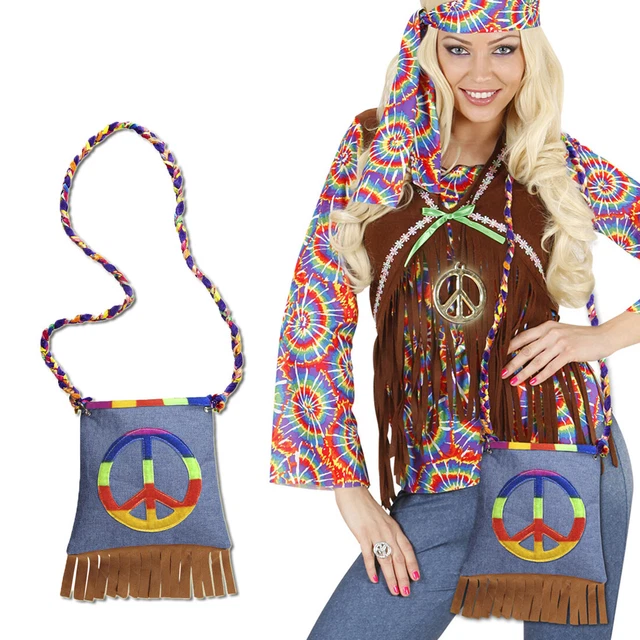PEACE HIPPIETASCHE FLOWER Power Beutel 70er Jahre Fransentasche Hippie