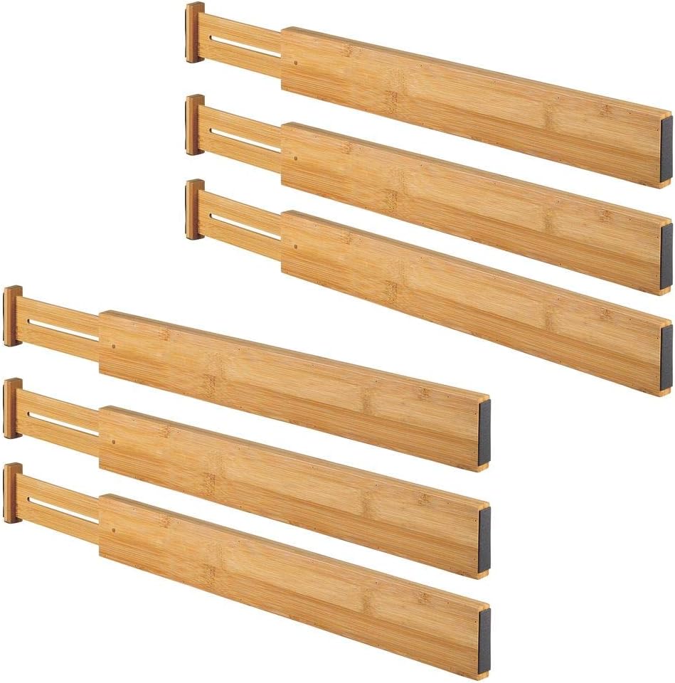 Perfekt für die Organisation von Kleidung, Küchenutensilien, Bürobedarf, Make-up, Badezimmer-Unordnung usw. Perfektes Geschenk: Unsere vielseitigen Schubladenteiler für Kleidung sind in Sets von 2, 4 und 6 Stück erhältlich, die ideale Anzahl von Trennwänden und präzise Verarbeitung machen dieses Schubladenset zur perfekten Geschenkidee für jedermann. Einfache Installation: Die großen Schubladenteiler können in wenigen Sekunden ohne Werkzeug installiert werden! Sind Sie immer noch besorgt, etwas zu finden? Sind Sie immer noch besorgt über verwirrende und unbequeme Dinge? Beginnen Sie Ihr neues organisiertes Leben mit unseren Schubladenteilern aus Bambus. Jede Trennwand hat einen glatten und langlebigen federbelasteten Mechanismus, der fixiert und leicht angepasst werden kann. Bitte messen Sie die Schubladengröße vor dem Kauf Dies ist ein wunderbares Geschenk für Ihre Einweihungsfeier, Muttertag oder Weihnachten. Der Schubladen-Organizer aus Bambus funktioniert als individueller Organizer für alles, von Besteck bis hin zu Dessous und sieht in jedem Raum attraktiv aus Schublade Trenner Praktischer Küchenschubladen-Organizer Für * - Kunststoffeinsatz Mit Verstellbaren Trennwänden Und Speziellen Funktionen: Erweiterbar, Ideal Zur Aufbewahrung Und Organisation Von Essstäbchen, Löffeln Schubladentrenner Verstellbar Küche Jetzt können Sie all das Chaos in der Küche, im Bad, im Büro oder in der Kommode vergessen. Perfekte Lösung, um alles in Ordnung zu halten und Ihr Zuhause ordentlich aussehen zu lassen. genialo - Bambus-Schubladen-Schränkchen Mehrzweck-Trennwände aus Bambus: Diese Küchenschubladenorganizer können in jeder Schublade Ihres Hauses oder Büros installiert werden. 1 Stück Schubladen-Organizer-Tabletts, stapelbare Trennwände aus Filz, vielseitige Trennwände für Kosmetik- und Make-up-Schubladen im Home Office