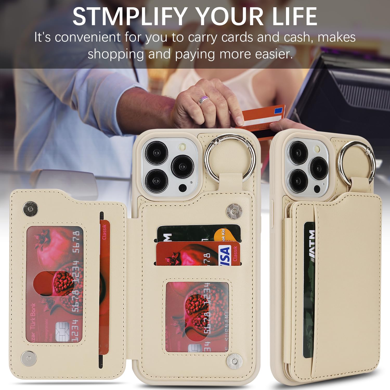 Havaya Für IPhone 16 Pro Max Hülle Mit Kartenfach Handyhülle Für IPhone 16 Pro Max Mit Schlüsselanhänger Hülle Geldbörse Für Herren Und Damen - Weißer Leopardendruck