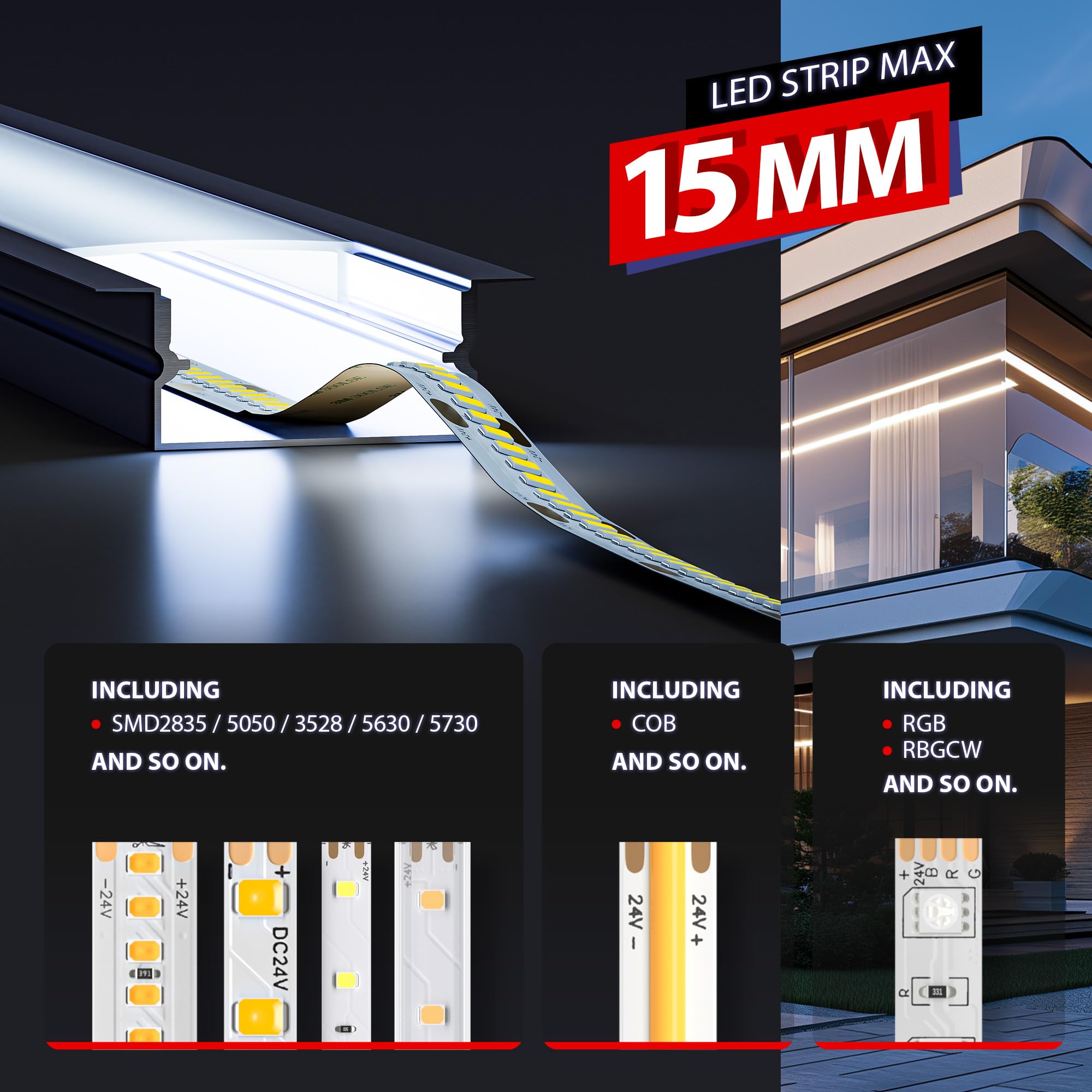 Schienen für LED Streifen | Vielseitige Optionen Dank sicherer Verpackung und schnellem Versand innerhalb Europas ist Ihr LED Profil 2m sofort einsatzbereit. Küche Durch die Gestaltung der Küchenbeleuchtung kann eine warme gemütliche Atmosphäre geschaffen werden 【GEEKLUX U-förmiges LED Aluminium Profil】Das LED Profil 2m ist mit einem hochwertigen LED Diffusor und praktischen Montageklammern ausgestattet. Dank der einfachen Handhabung können Sie das Aluprofil LED mit einer Handsäge auf die gewünschte Länge zuschneiden – mit glatten Kanten und ohne Verletzungsgefahr. Das eingelassene LED Alu Profil integriert sich harmonisch in Decken, Wände oder Stuckleisten Decke LED und schafft beeindruckende Lichtakzente mit professioneller Optik. In dieser Rubrik bieten wir: LED Aluprofile, U-Profile und Eckprofile für die einfache und sichere Montage von LED Streifen, LED Strips & Bänder. Hochwertige LED Profile zum fairen Preis Durch das praktische Klicksystem lassen sich das LED Trockenbauprofil und der LED Kanal mühelos montieren. Hochwertiges extrudiertes Aluminium sorgt für effiziente Wärmeableitung und verlängert die Lebensdauer der LED-Lichtleiste deutlich. Abdeckung: milchig (opal) weiß. u profil aluminium Händlervideo Basisdesign Sockel können den Boden beleuchten, um das Raumgefühl und die Hierarchie zu verbessern. Minimaler Lichtverlust und keine Lichtflecken, sorgt für eine hellere und gleichmäßigere Beleuchtung. LED Profil Aluminium 2 m, Led Kanal für led Streifen bis 25 mm, 30 x 20 mm Die glatte Rückseite ermöglicht eine einfache Befestigung mit Schrauben oder Montageklammern sowie eine nahtlose Integration in Trockenbauprofil LED, Wände und Decken. Besonders in Kombination mit RGB-LED-Streifen sorgt der LED Diffusor für eine stilvolle, indirekte Beleuchtung mit sanften Neonlichteffekten. Treppe Kann der Treppe ein Design verleihen und ein Gefühl von Weite schaffen Das unterirdische LED-Profil verfügt über ein spezielles spritzwassergeschütztes Design, das in Kombination mit wasserdichten LED-Lichtstreifen oder Lichtleisten effektiv Wasser verhindern kann Led Streifen 30m HOOLED LED Profil Für LED-Streifen 2 M X 5 Stück Trockenbauprofil 30m Led Strip GEEKLUX 5 x LED Profil Aluminium 2 m (10 m), Led Kanal für led Streifen bis 25 mm, 30 x 20 mm, Einbau-led Schiene mit PC Diffusor, inklusive Befestigungsclips, Trockenbauprofil für Decke und Wand Weiteres Zubehör kann bereitgestellt werden,Auf dem Lampenschirm befindet sich eine transparente Schutzfolie, die nach dem Lackieren oder der Installation entfernt werden kann und so die Installation sauber und ordentlich macht. Gleichzeitig gewährleistet die LED Schiene eine optimale Wärmeableitung, was die Lebensdauer Ihrer LED-Streifen erheblich verlängert.