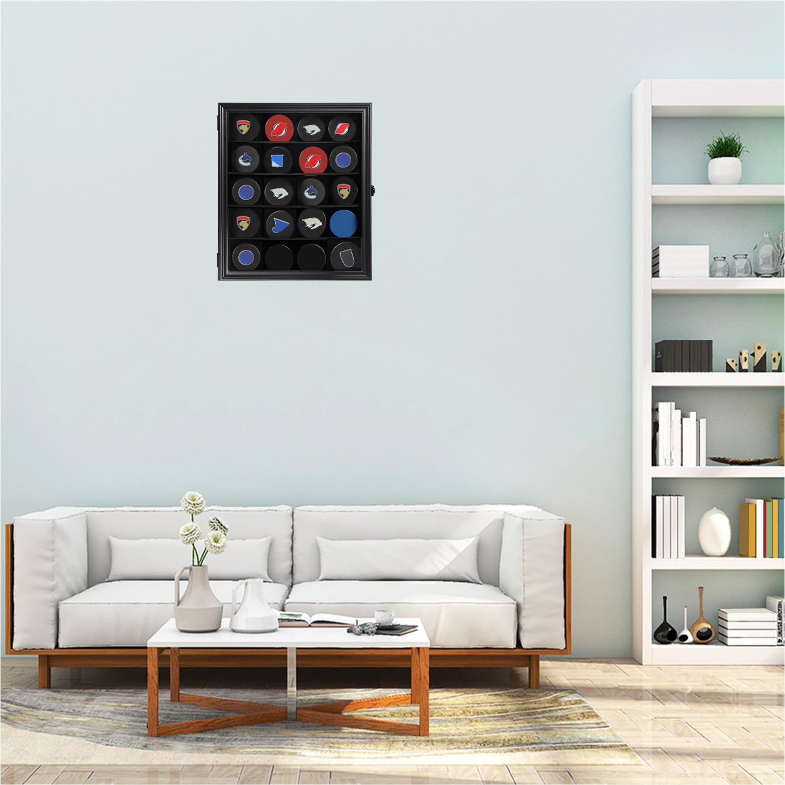 Mstrse Hockey Puck Vitrine - Halter Wandhalterung Schrank Ständer - Shadow Box Mit Echtglas Für Sammlung, Groß Schwarz