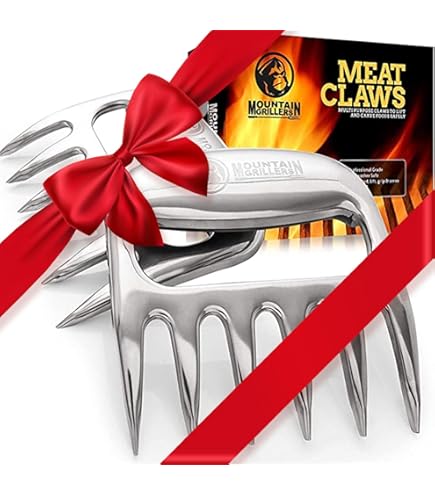 Fleisch Krallen / Bear Paws /Fleischgabeln /BBQ Claws für Pulled Pork... Praktikabilität – Maximieren Sie die Präzision mit den beiden Fleischkrallen, das ultimative Zubehör für stabiles Schneiden. Grill-Geschenkidee für Herren – Mehrzweck-Krallen für einfache Handhabung von Fleisch: Zerkleinern, Heben, Übertragen mühelos. Fleischbärenkrallen: Erleben Sie Schönheit und Präzision mit unseren zwei eleganten Fleischkrallen, die in einer eleganten Holzbox präsentiert werden. Entworfen für Enthusiasten, die Stabilität und Effizienz beim Kochen suchen, verfügt diese Bärenkralle über sorgfältig gearbeitete Zinken, die sicher greifen und verhindern, dass Fleisch verrutscht, was ein müheloses Zerkleinern und Handhaben von großen Schnitten oder zartem Steakschneiden ermöglicht. Sanft reinigen – Waschen Sie das polierte Zubehör mit der glatten Seite eines Schwamms und neutraler Seife, um den Glanz zu erhalten. Hochwertiges Material: Diese beiden Grill-Fleischkrallen aus poliertem Aluminium sind langlebig, scharf und beständig gegen Korrosion und hohe Temperaturen, perfekt zum mühelosen Zerkleinern von Huhn und Fleisch. Bear Paws Pulled Pork Krallen, Grizzly Edition - Farbe: Grau Best Meat Shredder Pulled Pork Krallen, Pulled Pork Gabeln, Meat Claws, BBQ Fleischkrallen, Bärenkrallen, Zerkleinerungskrallen Zum Zerkleinern Und Mischen, Zum Zerkleinern Von Pulled Pork, Huhn, Rindfleisch, 2 Pack Smoker Zubehör Premium Aluminium poliert Bärenkrallen-Set Fleischzerkleinerer Edelstahl Fleischzerkleinerer Krallen für Pulled Pork, Huhn BBQ, Küche Smoker Tool für BBQ Grillen, mit stilvoller Geschenkbox Vermeiden Sie den Gebrauch in der Spülmaschine oder das Schrubben mit der rauen Seite, um ein Stumpfen zu verhindern.