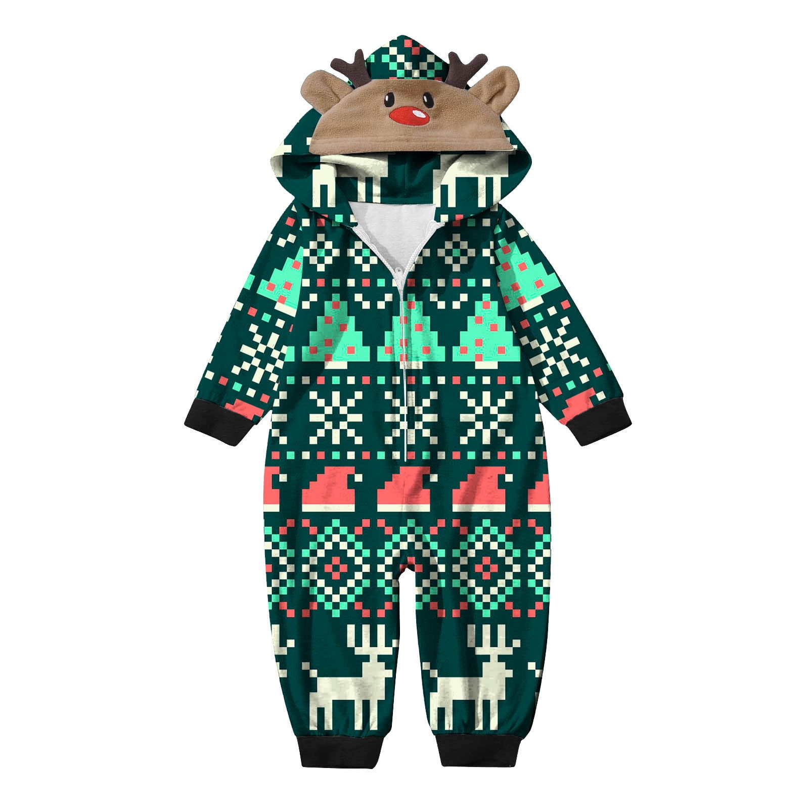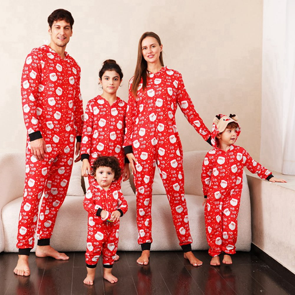 Pyjama 1 Piece Homme YEAXLUD Matching Family Pajamas Christmas Onesie Jumpsuit Zipper Soft PJ's Cute One Piece Printed Xmas Sleepwear(Men-S Jumpsuit For Women
