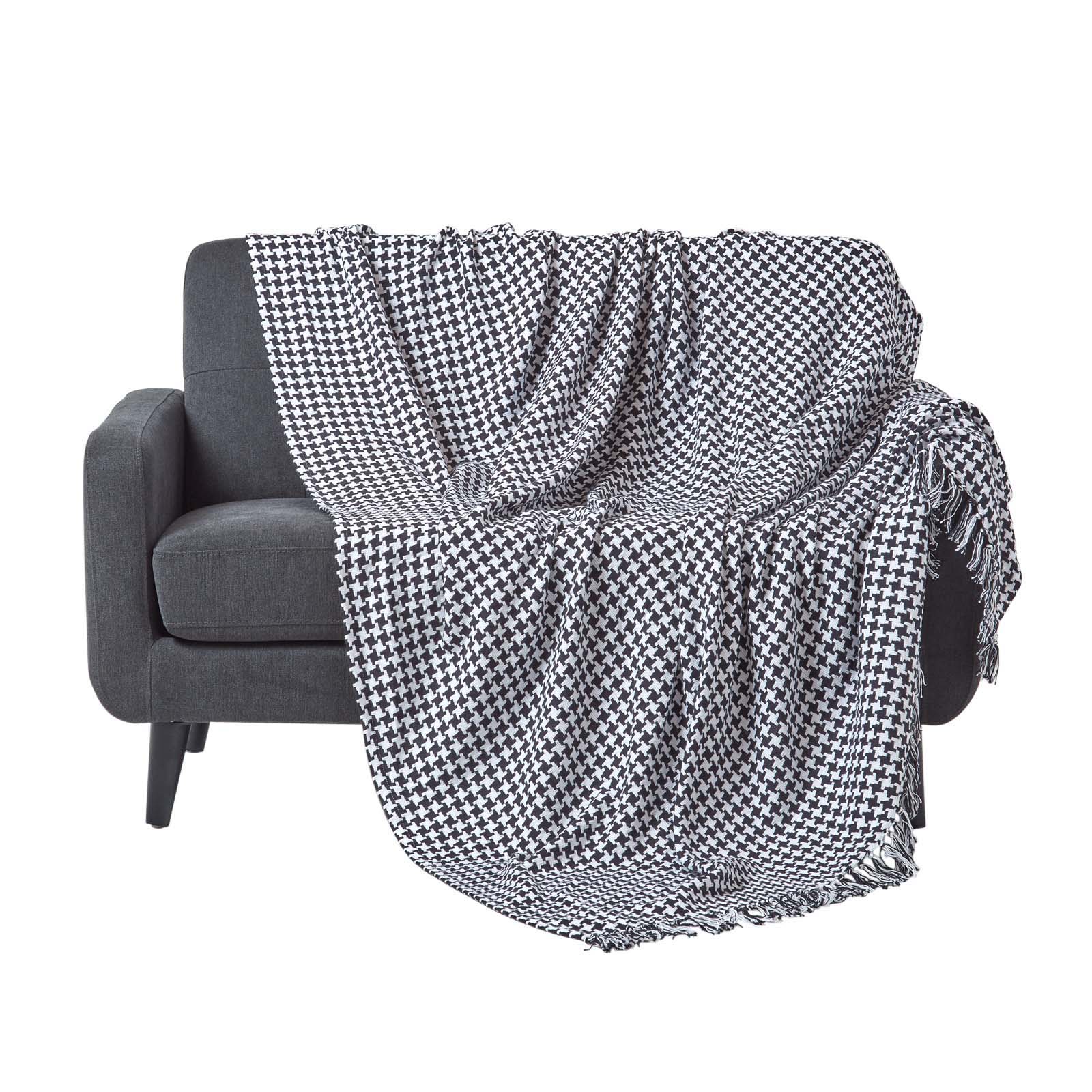 Hahnentritt-Design Überwurf Mit Quasten, Decke Sofaüberwurf