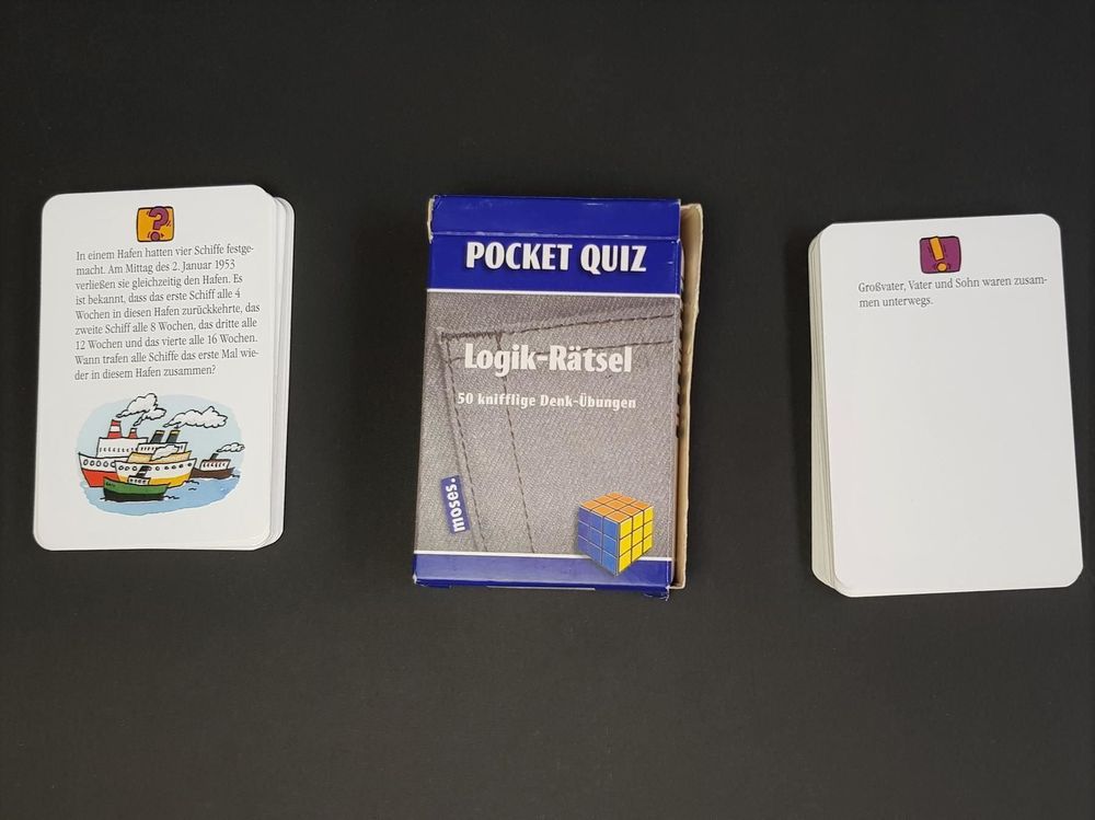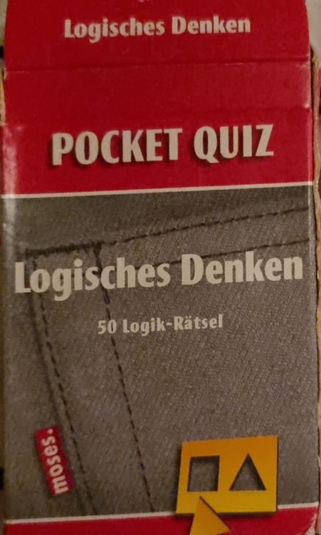 Karten. Etat : Gut. Gebraucht - Gut - ungelesen,als Mängelexemplar gekennzeichnet, mit leichten Mängeln an Schnitt oder Einband durch Lager- oder Transportschaden, Umverpackung beschädigt -Der ultimative Wissens-Check! Testen Sie Ihr Können beim Thema Logik-Rätsel! Verwirrende und knifflige Rätsel zum Nachdenken und um die Ecke Denken.150 Fragen und Antworten. Passt in jede... Moses Pocket Quiz Bilderrätsel 50 Fragen Pocket Quiz Logik-Rätsel: 50 Knifflige Denk-Übung... | Buch Knifflige Rätsel Für Erwachsene Käufer haben sich auch folgende Artikel angesehen Pocket Quiz Logik-Rätsel: 50 knifflige Denk-Übungen: 150 Fragen und Antworten (P Gewerblich EUR 4,99 Kostenloser Versand