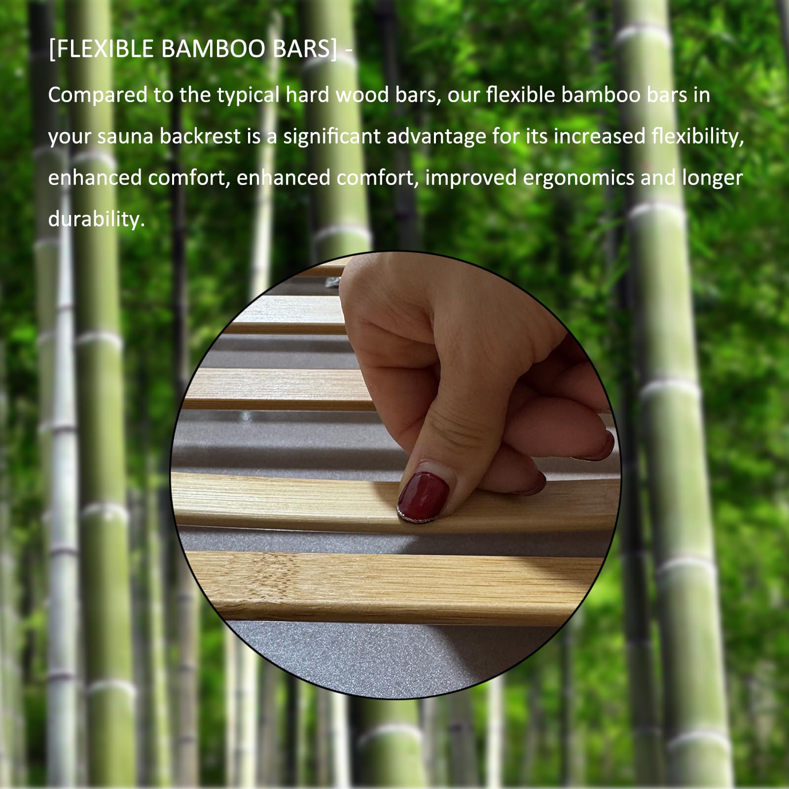 NUIBY Natürliche Bambus-Sauna-Rückenlehne, Flexibler Als Holz, Passt