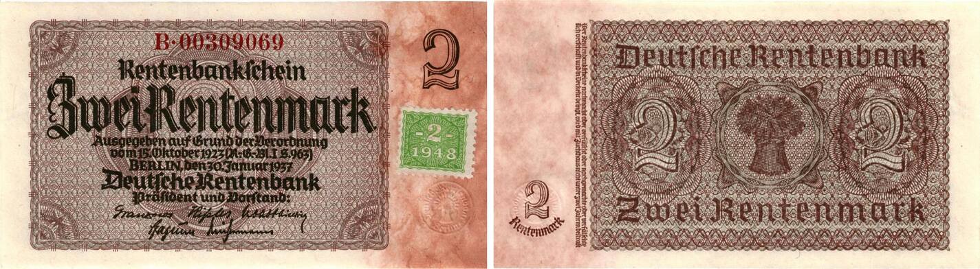 R.157: 10 Rentenmark 1923 (1 Geschreddertes Geld RENTENBANKSCHEIN ZWEI RENTENMARK Berlin, Den 30 Januar 1937, Deutsche Rentenbank EUR 48,00 - DE Deutsche Mark 1, 2 deutsche Rentenmark, 2 Rentenbankscheine Ausgabe/Issue 30., 01., 1937, Pick 173 + 174 originales Format und Maße,auf hochwertigem Papier, beidseitig bedruckt, gedruckt mit ORIGINAL TINTE RENTENBANKSCHEIN ZWEI RENTENMARK Berlin, den 30 Januar 1937, Deutsche Rentenbank - EUR 48,00.ZU VERKAUFEN! RENTENBANKSCHEIN ZWEI RENTENMARK Berlin, den 30 Januar 1937, Deutsche Rentenbank - EUR 48,00. ZU VERKAUFEN! Rentenbankschein Zwei Rentenmark Berlin, den 30 Januar 1937, Deutsche Rentenbank. Versand mit Einschreiben. Privatverkauf: keine Rücknahme, vom Umtausch ausgeschlossen. 125034801493 *** Wir beliefern Kino, Film, Theater- und Fernsehproduktionen *** 3.Reich 2 Rentenmark 30.Jannuar 1937