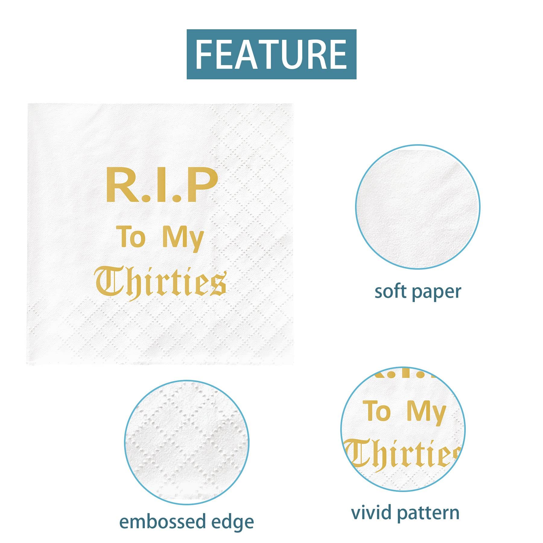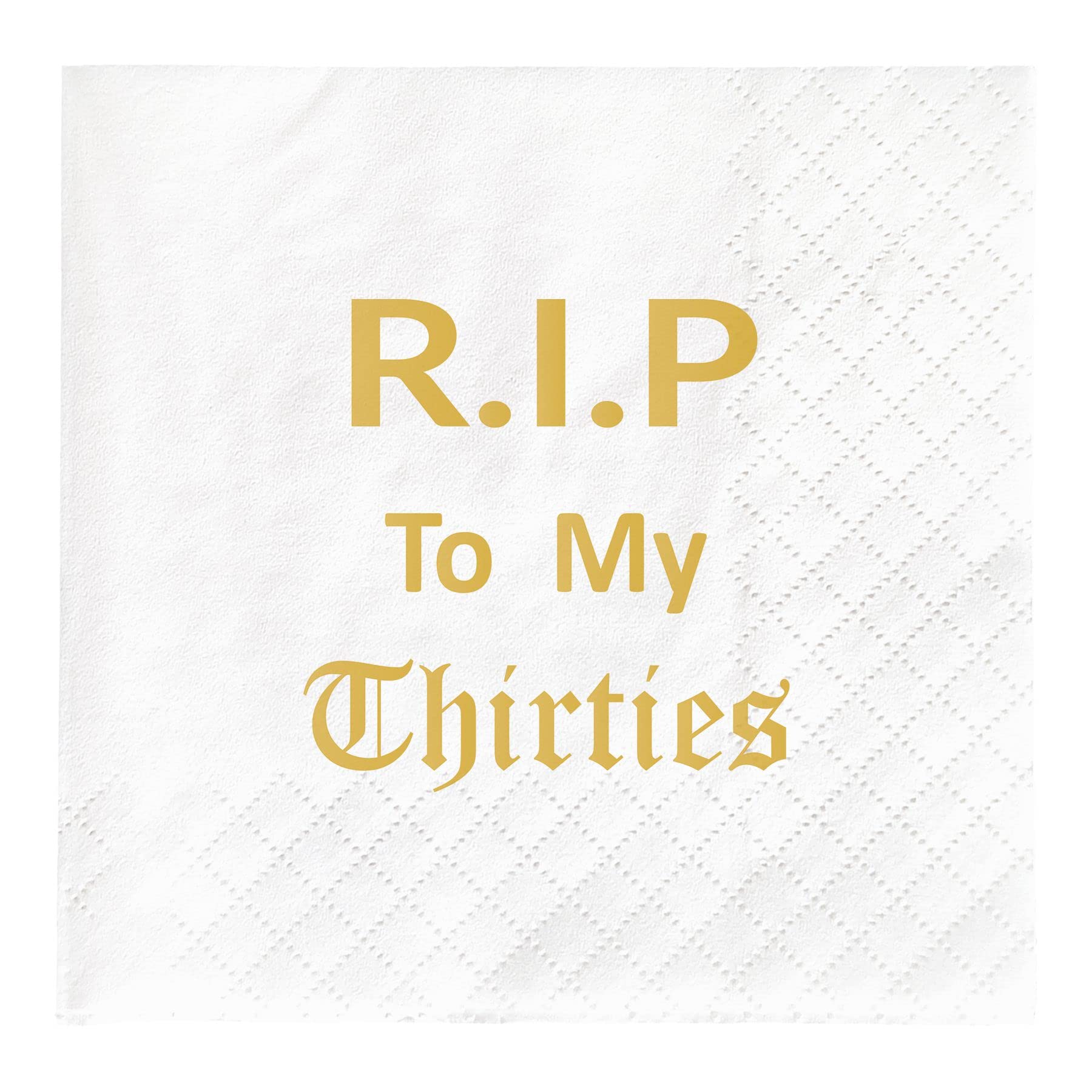 R.I.P To My Thirties Cocktail-Servietten Zum 40. Geburtstag, RIP To My 30s Einweg-Papierservietten Für Geburtstagszubehör, Dekoration, Geschenk, 50 Stück, 2-lagig, Gefaltet, 11,4 X 11,4 Cm
