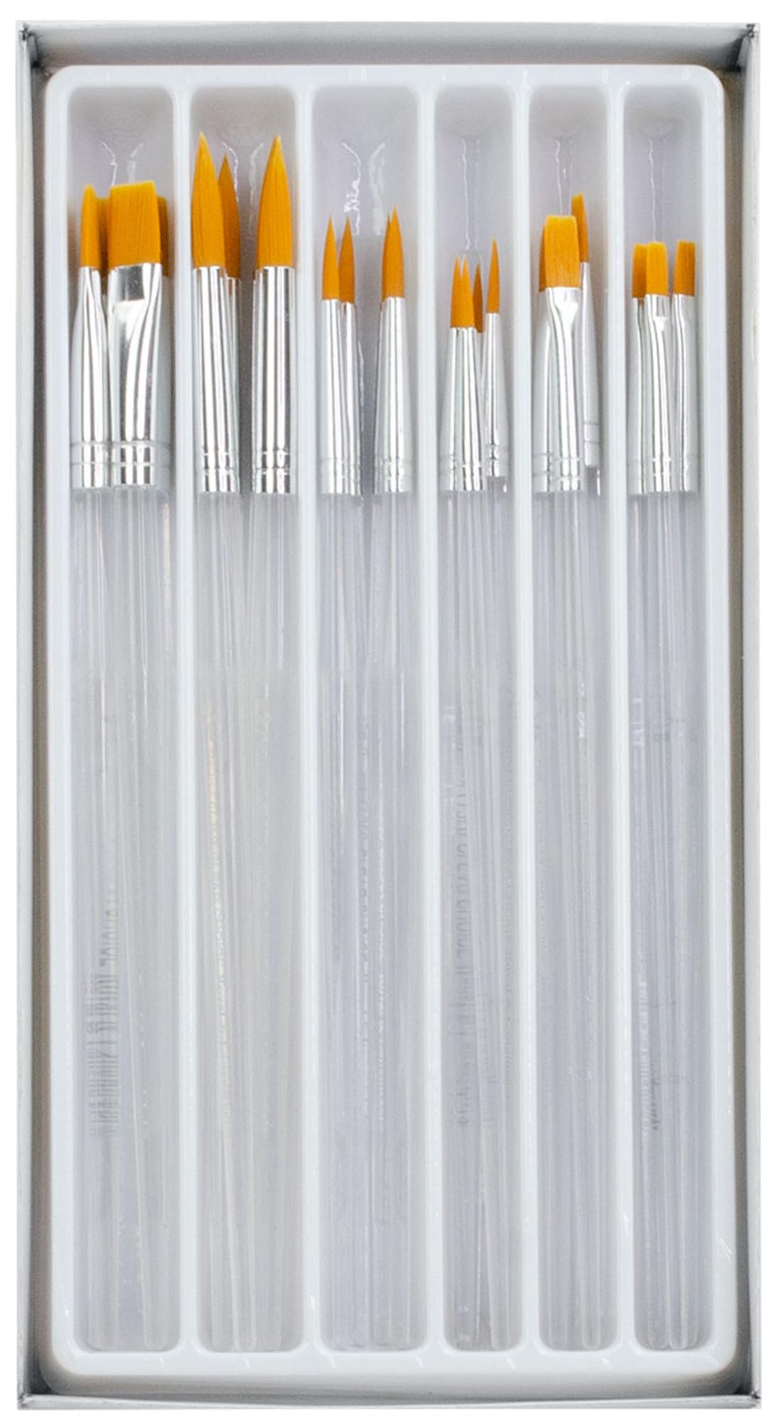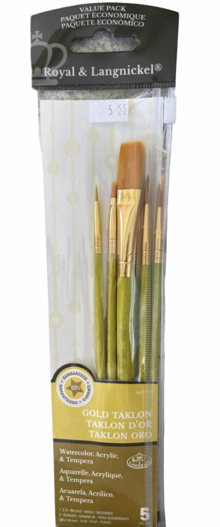 Produktbeschreibungen Das 5-teilige Set besteht aus den Größen: Fächer 2/0; Script 10/0; flach 2; abgeschrägt 1/8 inch, 0 ez Reach Goldene Synthetische Taklon Fasern , Nahtlose Aluminiumzwinge , Hitzegetrockneter Hartholzgriff , Wiederverwendbarer Plastikbeutel Royal & Langnickel RSET-9146 - Gold Taklon 5-teiliges Pinsel Set Gemischt