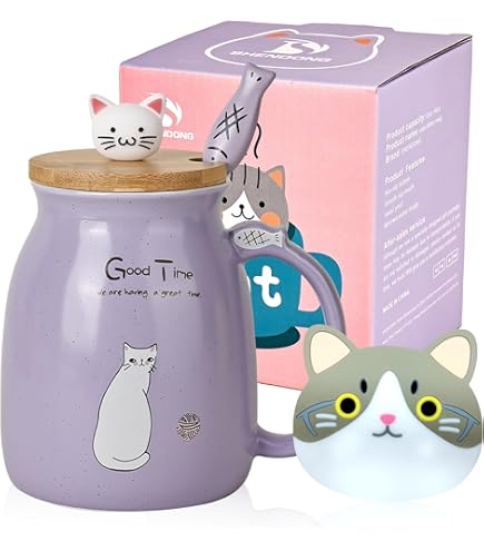Der Teebecher ist das Teegeschenk für Teeliebhaber. Glatte Körbchen-Körperschnitzerei, fühlt sich angenehm zu bedienen. Es ist eine Kaffeetasse, Teebecher, Kaffeebecher, Kitty Anime Becher, Milch Morning Becher, Teebecher mit Tee Steeper und Deckel. Der Deckel kann nicht nur als Deckel und Untersetzer verwendet werden, sondern auch als Dessertteller für eine Vielzahl von Snacks und Speisen. Erfüllen Sie Ihre vielfältigen Bedürfnisse und genießen Sie Ihr Getränk auf niedliche Weise Teetasse mit Tee-Ei, süße Katze, Teetasse mit Deckel und Löffel, Kawaii-Keramik-Kaffeetasse mit Untersetzer Die Eiskaffeebecher Kapazität ist 13., 5oz/400ml. 🐾Niedliche Katze Kaffeebecher: Die coole Katze Becher ist aus Hochtemperatur-Keramik. Ostern, Halloween, Weihnachtsgeschenke für Frauen, Männer, Ehefrau, Mama, Oma, Mädchen, Freundin, Freund, Kollegen, Lehrer, Bekannter. Tolles Geschenk für Frauen, Männer, Ehefrau, Mutter, Mädchen, Jungen, Lehrer, Freund, Kollegen Lustige Untersetzer Edelstahl Topf Rack – Ablage Deckel Löffel Halter Einzigartiges Design Halter Kueche Werkzeug Personalisierter Löffel Glatte Katzen-Tassen Dieses niedliche Tassen-Set besteht aus hochwertiger Keramik. Schwarz Katze Kaffeetasse, Süße Keraik Teetasse it deckel, Löffel Großer Griff, sorgt für einen komfortablen Griff. 🐾Sicher und langlebig: Der lustige Kaffeebecher ist mikrowellengeeignet, kühlschranksicher und spülmaschinenfest, geeignet für heiße Getränke. 🐾Katze Dekor und Kawaii Zeug: Niedliche Katze Keramik-Teebecher spielt eine wichtige Rolle in Ihrem Leben, wird ein sehr wichtiger Teil Ihrer Desktop-Ästhetik, in Ihrem Büro, zu Hause. Ideal als Geschenk Perfektes Geschenk für Katzenliebhaber: Es ist auch schön als Geburtstagsgeschenk, Weihnachtsgeschenk oder Austauschgeschenk. Schwarz Katze Kaffeetasse, Süße Keraik Teetasse it deckel, Löffel...