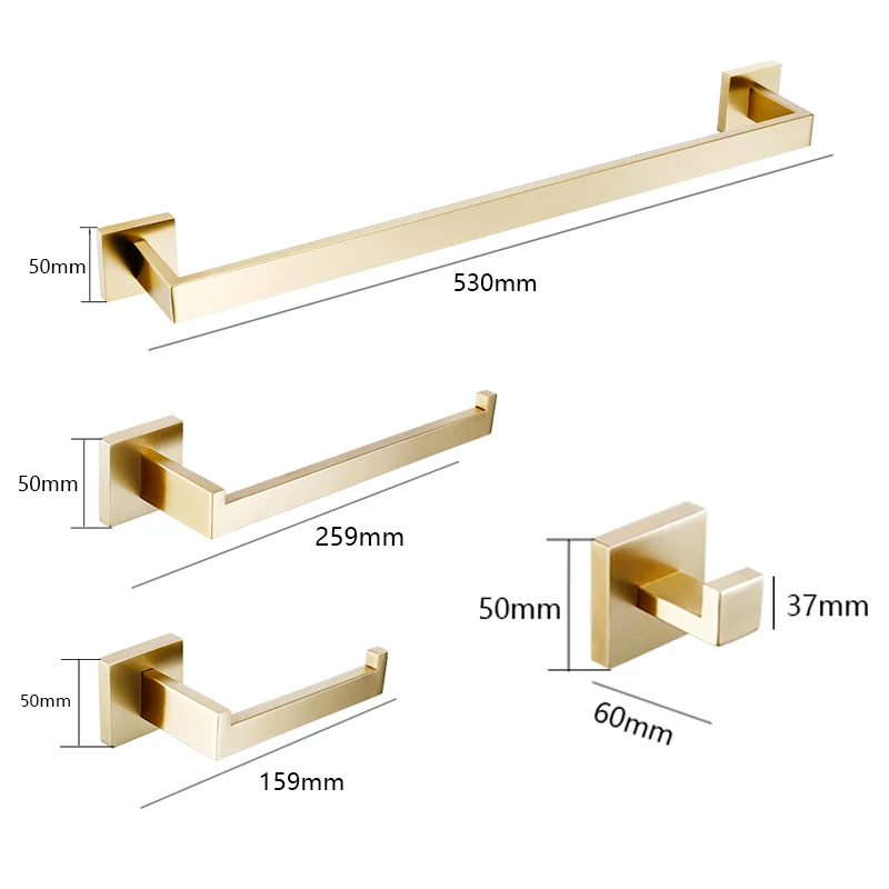 Hardware-Set Aus Gebürstetem Gold, Bazimmerregal, Handtuchhalter, Rack, Kleirhaken, Toilettenpapierrollenhalter, Schwarz, Bazimmer-Zubehör-Set, 4-teilig