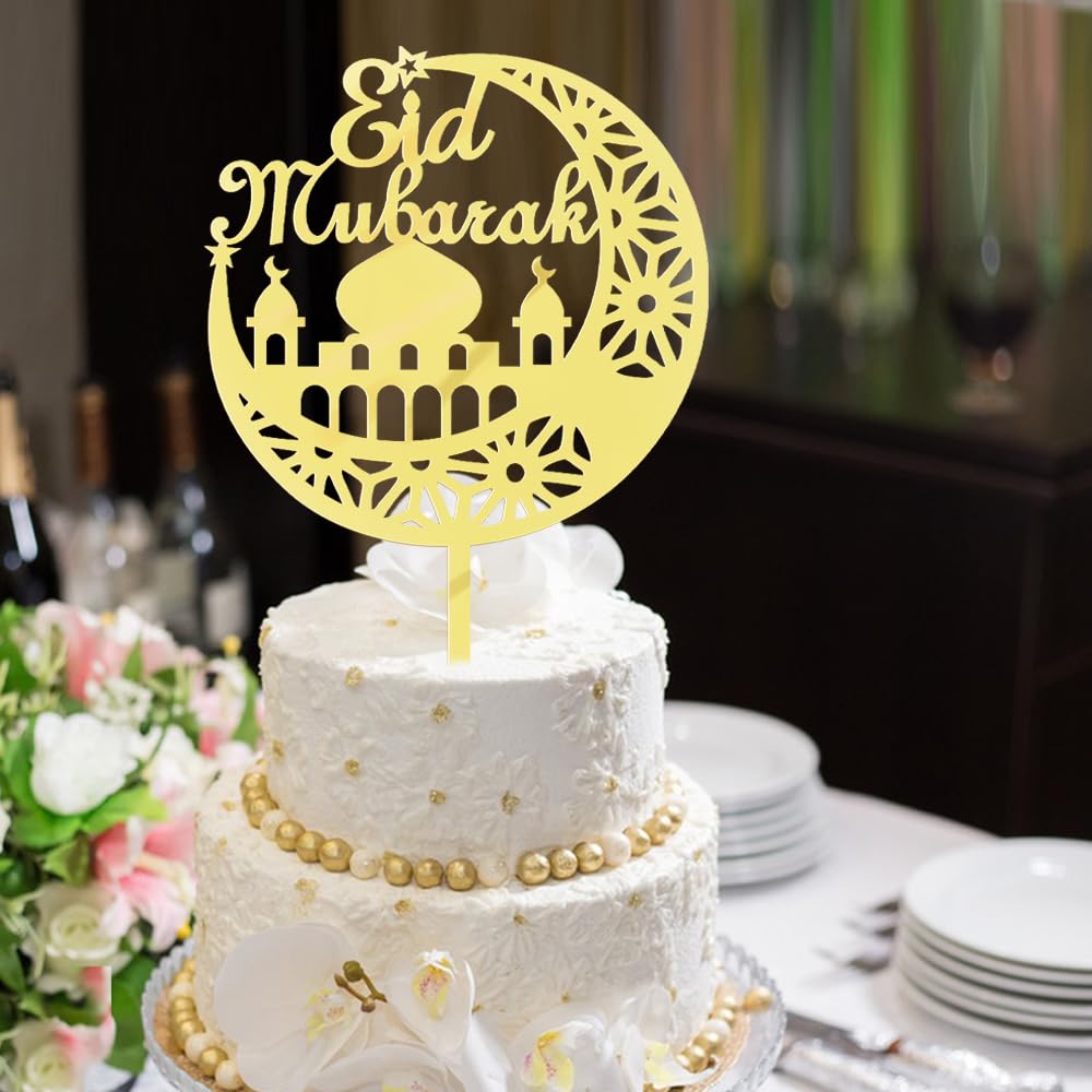 Ramadan Kuchendekoration Islam Fest Cake Decor Eid Mubarak Cake Topper - Kuchendekoration Für Ramadan & Islamische Feste, Goldfarben Ramazan Deko
