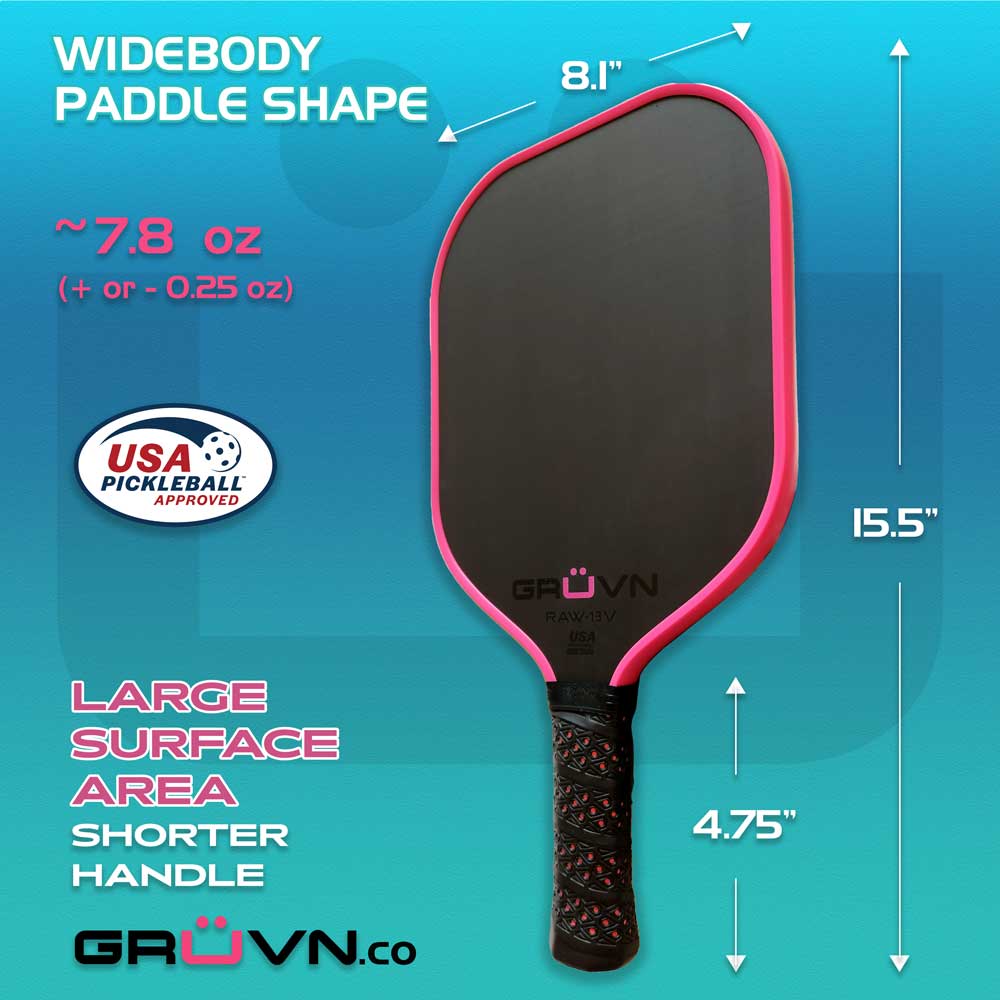 Carbon Fiber Pickleball Paddle 13mm RAW-13V Pink T700 Raw Carbon Fiber Polypropylene Core USAPA Approved USA Pickleball GRÜVN Pink