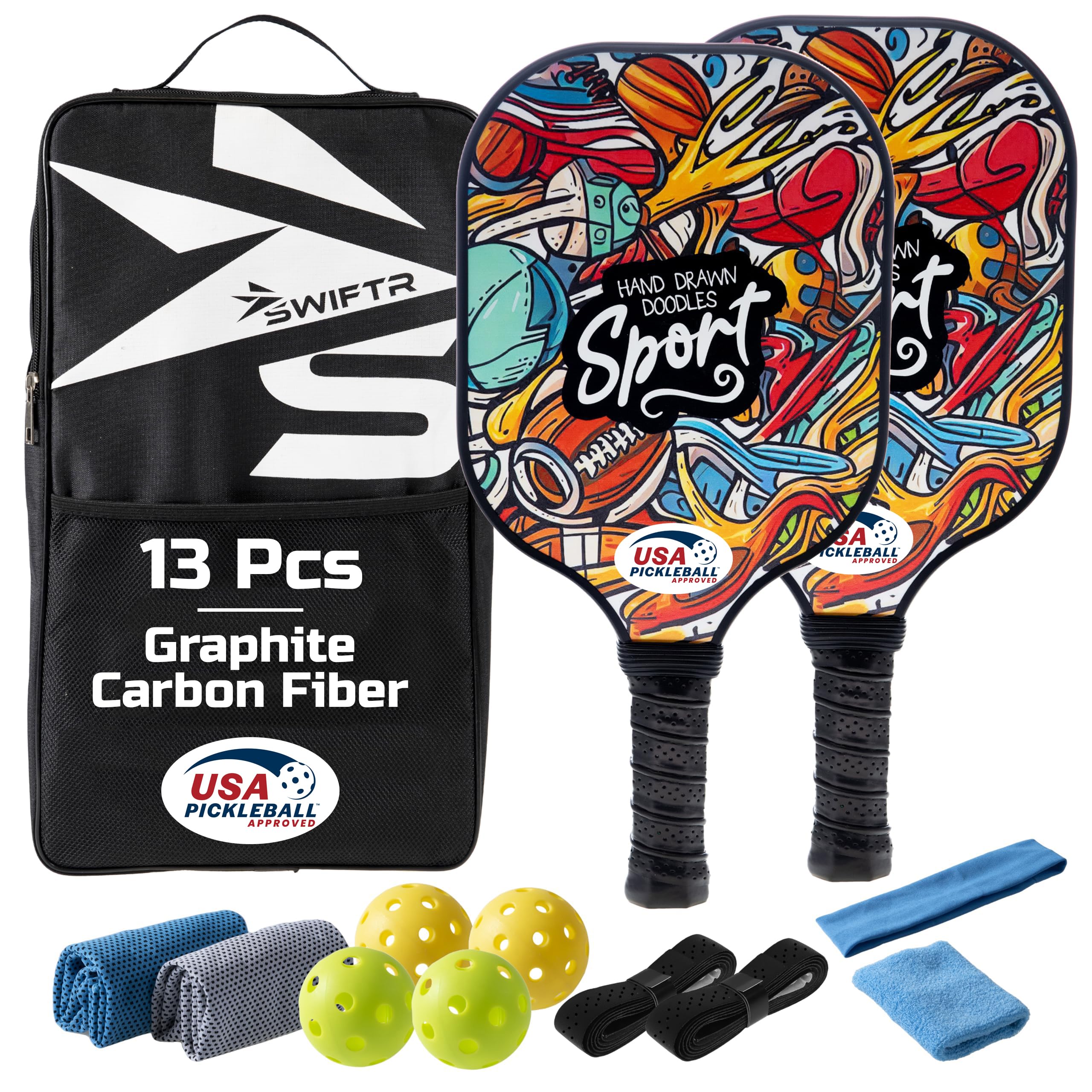 Des Weiteren erhöht ihre großzügige Oberfläche die Anzahl der Sweetspots und sorgt so für einen optimalen Schuss bei jedem Schwung Griffgröße: 12,7 cm Lieferumfang: Pickle Ball Paddle Set mit 2, 4 Pickleball & 1 Pickleball-Tasche, 2 Kühltücher, 2 Handgriffe, 1 Armband und 1 Stirnband Das Spiel der besten Pickle Ballschläger fesselt seit Jahrzehnten Spieler aller Altersgruppen und Fähigkeitsstufen. Die Schichten aus strapazierfähigem Kohlefaser-Pickleball-Paddel bieten unvergleichliche Haltbarkeit und Langlebigkeit. Leistungsstarkes Set] Das 13er-Pack enthält Pickle Ballschläger 2 Packungen, eine stabile Tasche für einfachen Transport & 4 Pickle Ball in 2 lebendigen Farben, 2 kühlende Handtücher, 2 Handgriffe, 1 Armband & 1 Stirnband HSYFUNA Pickleball Schläger, Pickleball-Paddel mit Fiberglas Darüber hinaus sorgt die verbesserte Haltbarkeit dafür, dass Spieler trainieren und konkurrieren können, ohne sich Sorgen machen zu müssen, dass ihr Pickleball-Set mit 2 Stücken dem Verschleiß erliegt, was zusätzliche Sicherheit bei intensiven Spielen bietet. [Gepolsterter Griff] Die Griffe der Pickleball-Paddel sind sorgfältig mit Graphit-Karbon-Griff gepolstert. Egal, ob Sie ein Gelegenheitsspieler sind, der Spaß sucht, oder ein Profi, der einen Wettbewerbsvorteil sucht, das richtige Pickle Ball Paddel kann den Unterschied machen. Mit erhöhter Kraft können die Spieler den Ball härter und mit größerer Geschwindigkeit treffen und so ihre Gegner auf den Hinterfuß setzen. Das innovative Design dieses Pickleball-Sets geht über die reine Ästhetik hinaus. GRATIS, LIVE + ONLINE: Jonglieren lernen am Karfreitag mit 3 Bällen (18... [Leichter Halt] Unser Gurkenball-Set wiegt nur 221 g und bietet einen leichten 12,2 cm langen Griff, der keine Beschwerden in der Hand verursacht. Spezifikationen: Material: Graphit-Kohlefaser., Farbe: Schwarz. Pickleball-Paddel aus Kohlefaser ist bekannt für seine außergewöhnliche Festigkeit und Verschleißfestigkeit. Pickle Ball Board Carbon Fiber Pickleball Paddle 13mm RAW-13V Pink T700 Raw Carbon Fiber Polypropylene Core USAPA Approved USA Pickleball GRÜVN Pink Pickleball Set [Leistungsstarkes Set] Das 13er-Pack enthält Pickle Ballschläger 2er-Pack, eine stabile Tasche für einfachen Transport & 4 Pickle Ball in 2 lebendigen Farben, 2 kühlende Handtücher, 2 Handgriffe, 1 Armband & 1 Stirnband.