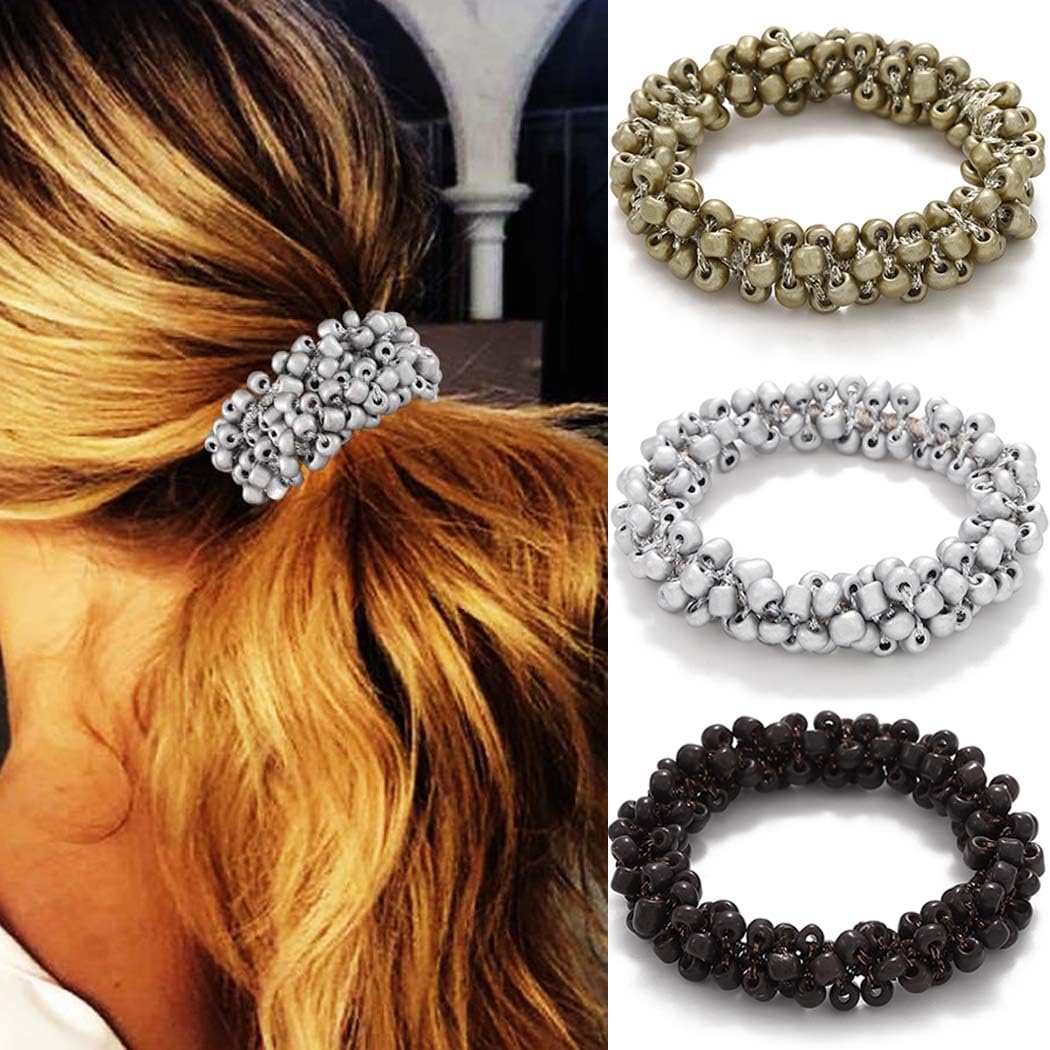Reaky Perlen-Haargummis Mit Strasssteinen, Pferdeschwanz-Halter