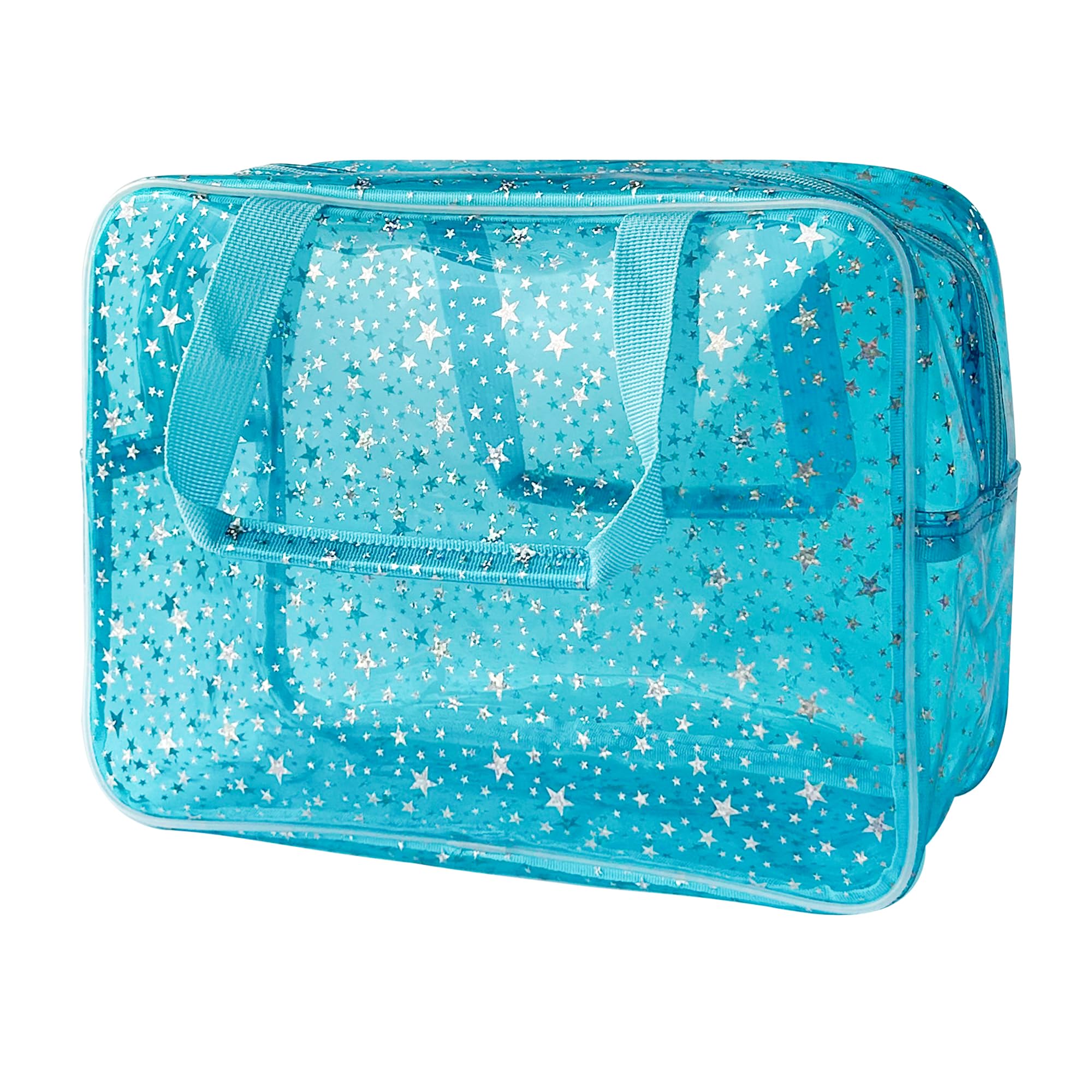TotePrint Clear Star Große Kosmetiktasche Und Reisetasche Mit Griff, Strapazierfähiges Material, Reißverschluss-Design, Ideal Für Make-up, Reiseutensilien, Blau