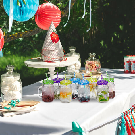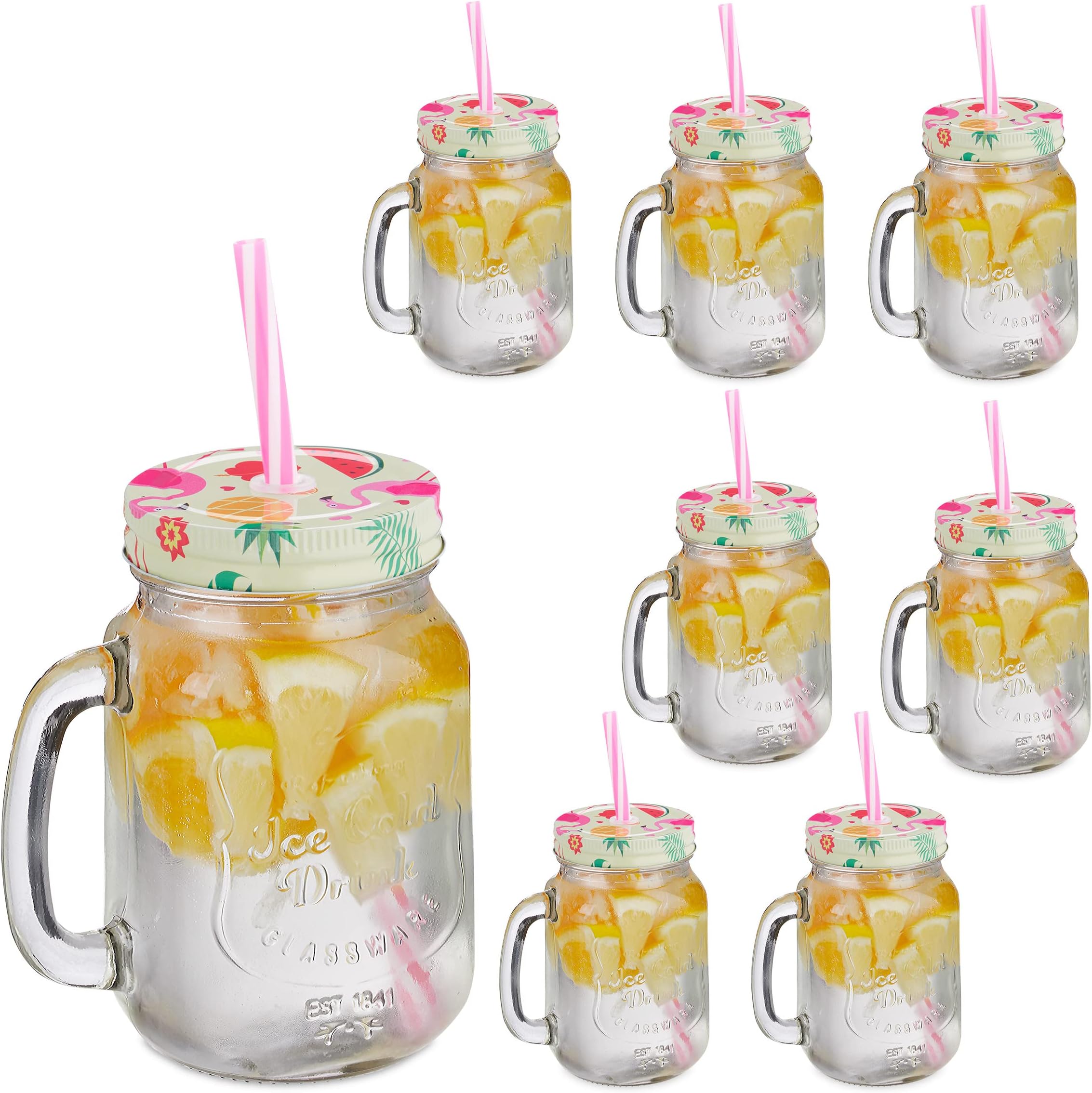 Relaxdays Trinkgläser Mit Deckel Sommerbecher Retro Glas 8er Set Limonadenglas Sommerglas
