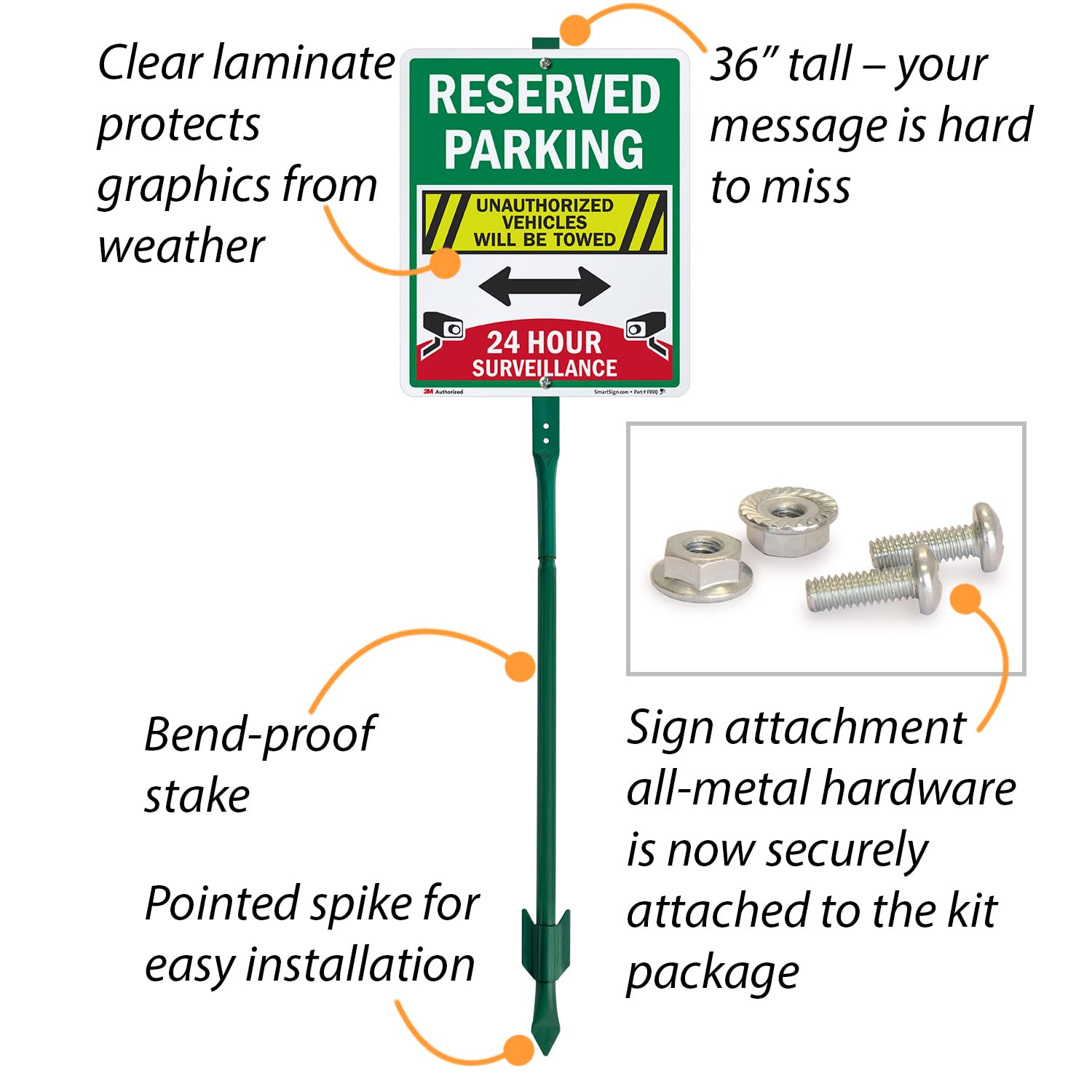 Unsere South Dakota Fabrik ist der älteste Hersteller von Metallschildern in den USA., Branchenführende Haltbarkeit. Grafiken sind vor Wetter und Missbrauch geschützt. Im Gegensatz zu vielen anderen Schildern verwendet unser Schild Reserved Parking - 24 Hour Surveillance, Unauthorised Vehicles Will Be Town branchenführende 3M-Tinten und nicht markenfremde oder andere langlebige Tintenstrahl-Pigmente, die in ein oder zwei Jahren verblassen. Reflektierende Schilder sind schwer zu ignorieren. 3M AUTHORIZED Offizielle 3M-reflektierende Folien und Tinten auf strapazierfähigem, rostfreiem Aluminium sorgen dafür, dass unsere Schilder alle DOT-Anforderungen für Parkplatz- und Verkehrszeichen erfüllen., Laminiert. Reflektierende Oberfläche bedeutet, dass das Licht aus den Scheinwerfern geworfen wird, zurück reflektiert und das Schild besser lesbar ist. Vermitteln Sie Ihre Unauthorized Vehicles Will Be Towed Warnung mit diesem Reserved Parking Schild. Reflektierende Schilder von 3M Engineer Grade sind das gängigste Material, das auf unseren öffentlichen Straßen zu finden ist. 3M Engineer Grade Schilder haben eine bis zu 7 Jahre Garantie für den Außenbereich Reserved Parking For .... Unauthorised Vehicles Will Be Towed Away Sig Unsere vorgebohrten Aluminiumschilder haben eine reflektierende Oberfläche für zusätzliche Sichtbarkeit bei dunklen und schlechten Lichtverhältnissen. 3M Engineer Grade Schilder haben eine 7-jährige Garantie für den Außenbereich, aber die meisten Schilder halten viel länger. 1 Hour Parking Violators Will Be Towed at Owner's Expense Sign - Signs Seit 1918 im Familienbesitz, wir sind stolz auf unsere Schilder. Unauthorised vehicles will be towed sign – The Safety Sign Shop