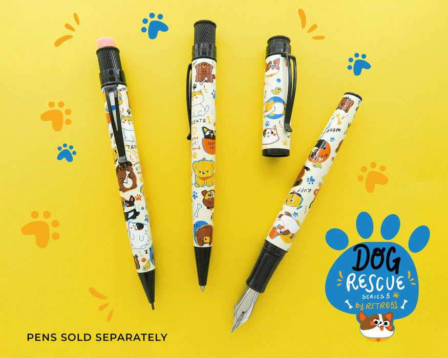 Schreibgerät-Form: multifunktionales Schreibinstrument Jedes Schreibgerät wird mit den verspielten Katzen Siebdruck versehen und anschließend mit einem glänzenden Klarlack beschichtet und mit schwarzen Akzenten versehen. Egal ob Sie mit dem Dreh-Tintenroller, 1,15 mm Bleistift oder dem Füllfederhalter schreiben, Sie werden den gleichen verspielten und liebenswerten Geist von Katzen in Ihr tägliches Schreiberlebnis einfließen lassen. Mit jedem Kauf wird ein Beitrag an Take Me Home Pet Rescue geleistet, eine gemeinnützige Organisation mit Sitz in Texas, die sich der Überbevölkerung von obdachlosen Haustieren widmet und liebevolle Häuser für gerettete Tiere findet. Retro 1951 51 Cat Rescue Series #5 Kugelschreiber Retro 51 Tornado™ Rescue - Cat Rescue Series 5 Ballpoint Embrace the playful and lovable spirit of cats with the newest Cat Rescue Series 5 Tornado™ Ballpoint pen from Retro51