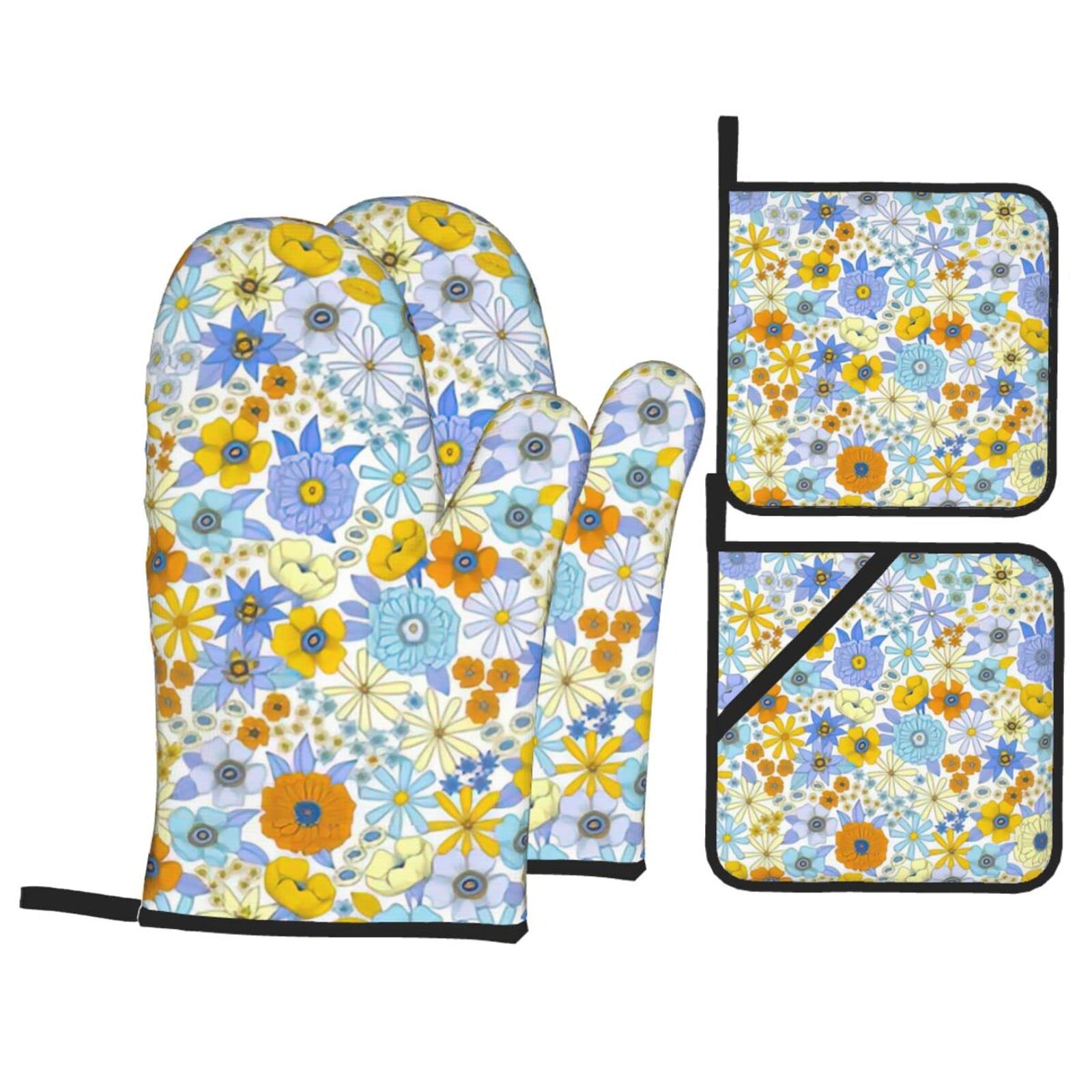 Gearsly Ofenhandschuhe Und Topflappen, Retro-Stil, Hippie-Blumenmuster