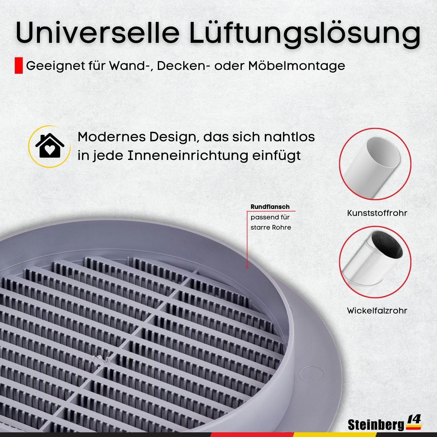 Lüftungsgitter Schwarz Steinberg14 Revisionsklappe 200x200mm Wartungstür Aus Metall - Revitür Lüftungsgitter Mit Rückstauklappe 150 für Rohre mit Nennweite 150mm , Farbe: grau , Hergestellt in Europa Ohne Flanschmit InsektenschutzgitterAbmessungen: 200x200mmfür Rohre mit 150mm NennweiteFarbe: grauHergestellt in Europa, ohne Flansch Mit diesem Gitter erzeugen Sie einen idealen Abschluss Ihrer Wandöffnung. Das Lüftungsgitter gibt es in verschiedenen Größen und Farben ; 4,5 von 5 Sternen 574 Vase aus Metall, grau | Maisons du Monde Gitter Dalap GMAS 250x100 mm, manuelle Lamellen, grau Ihr Onlineshop für Abluftventilatoren, Thermostate und Fußbodenheizungen - Fassadengitter aus Metall, weiß oder grau