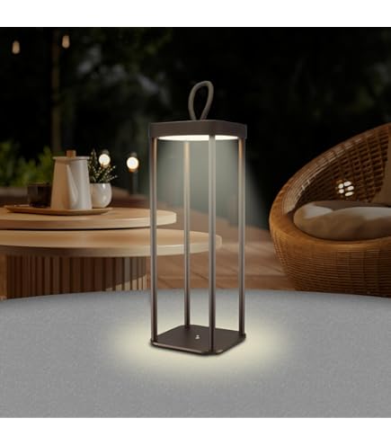LED Tischleuchte mit 2700K Farbtemperatur warmweiß und 2,2 Watt Leistung. IN & OUT, geeignet für den Innen- und Außenbereich (Schutzart IP54), perfekt für die Entspannungsecke auf der Terrasse oder im Wohnzimmer, im Garten eines Restaurants oder zur Beleuchtung eines besonderen Ereignisses wie einer Hochzeit Einschalten mit Touch-Schalter und Aufladen über USB-Kabel, 12 Stunden Akkulaufzeit. Maße: 140 x 140 x 470 mm. Struktur: aus lackiertem Aluminium-Druckguss mit Vorbehandlung für den Außenbereich. Konstsmide LED USB-Laterne gross Ravello, schwarz, dimmbar (7812-750 PIC-NIC Tragbare und wiederaufladbare LED-Tischlampe, anthrazit, ideal für die Beleuchtung von Terrassen und Gärten, aber warum nicht, auch um Ihr Picknick im Park zu verschönern. Bei einem geringen Energieverbrauch und einem vergleichsweise hohen Lichtstrom ist Aaron als LED-Außenwandleuchte sehr energieeffizient, was den Geldbeutel schont. Batteriebetriebene LED-Laterne mit Schutzart IP54, wodurch das Produkt für den Außen- und Innenbereich geeignet ist. Die Picknick-Laterne ist von der Marke Rossini Illuminazione Eine moderne Laterne, die Romantik der Laterne trifft auf die LED-Technologie-Seele. Der Lichtaustrittswinkel kann sowohl oben als auch unten verstellt werden, von sehr breit bis ganz schmal. Moderne LED-Picknick-Laterne von Rossini Illuminazione kabellos, dimmbar, Verwendung im Innen- und Außenbereich, 2,2 Watt, warmes Licht, 2700 K, IP54, 12 Stunden Lebensdauer (h. 47 cm, Corten Lanterna Led Ricaricabile Lanterna LED Rossini Pic-nic - Ricaricabile Wireless 43cm Luce Calda 2700K Lanterna Rossini Pic-nic