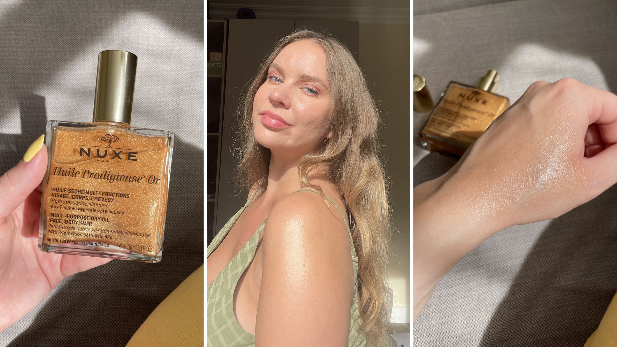 Nuxe Huile Prodigieuse Or Multi-Purpose Dry Oil 50ml Nuxe - Huile Prodigieuse - Multi-Purpose Dry Oil 100ml - All Skin Types Dieses Nuxe Huile Prodigieuse Amazing Dry Oil ist ein vielfach verwendbares Öl für Gesicht, Körper und Haar. Es hinterlässt dein Gesicht und deinen Körper weich und samtig, und dein Haar wird geschmeidig, glänzend und erhält volles Volumen Nuxe Set Huile Prodigieuse Multi Purpose Dry Oil 30 Ml, protege, cuida, rejuvenece Nuxe Huile Prodigieuse Anwendung NUXE Huile Prodigieuse Riche Mini - Intensively Nourishing Dry Oil For Body Shimmer