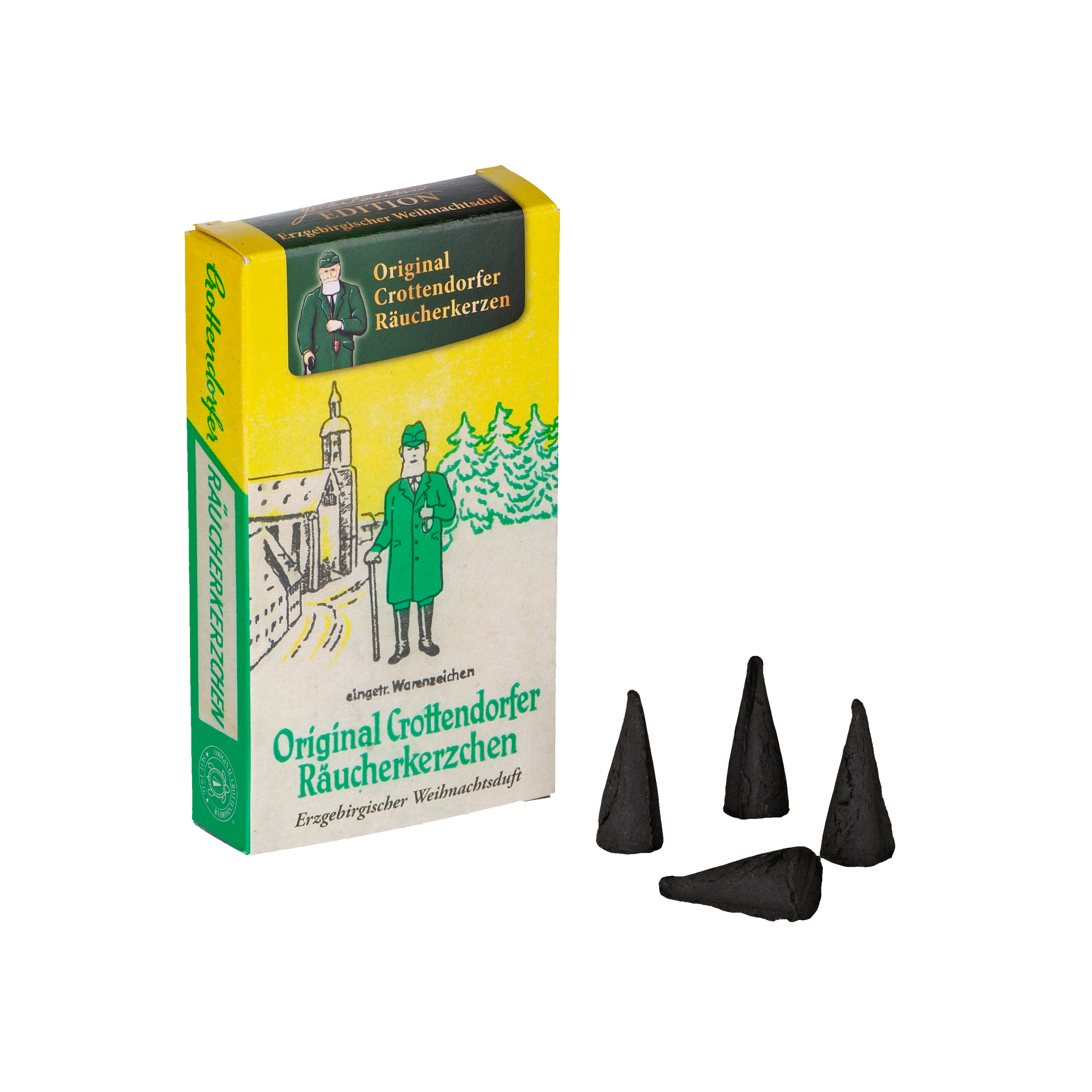 Crottendorfer Räucherkerzen Räucherkerzen - Weihrauch Riesen 4er | Weihnachtsdüfte | Räucherkerzen Bunte Mischung Sorten Räucherhäuschen "Dar Vugelbärbaam" – Original Crottendorfer Produktinformationen "Crottendorfer Räucherkerzen – Opas Weihrauchkerzl – Limitierte Sonderedition" Original Crottendorfer Räucherkerzen im Sparpack Original Crottendorfer Räucherkerzen - 10x24 Sparpack - Bunte Mischung Erzgebirge