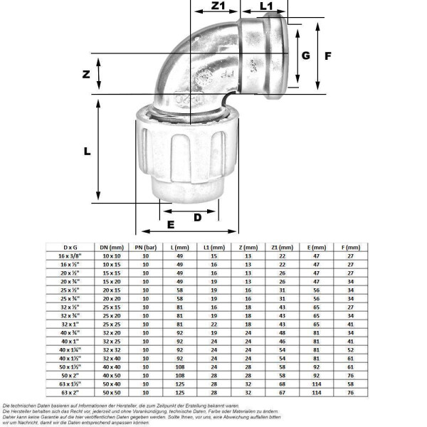 Für die Montage bieten wir Ihnen alle nötigen Montagewerkzeuge an wie den Montageschlüssel, den Entgrater und die PE Rohrschere. PP Winkel mit Innngewinde G3/4", für Rohr-AD 25mm Technische Daten: Durchmesser Ø : 32mm x 1 Zoll Material : PP Druck : 16 bar Gewicht : 140 g Farbe : Grau / Schwarz Maße : 118x62x87mm (LxBxH) Lieferumfang: 1 Winkel 90° mit Innengewinnde 32mm x 1 Zoll Pp Fitting 32mm GEBO Steckfitting PE Rohr Verschraubung 32mm X 3/4" Innengewinde Pe Fitting 32mm Sie zeichnen sich durch hohe hydraulische Dichtheit bei schneller und einfacher Montage aus. Gebo PE Rohr Verschraubung 32mm x 3/4 Innengewinde Anschluss Übergang Die Verbindung des Fittings mit dem Polypropylenrohr wird durch einen Klemmring abgedeckt, der das Rohr nach dem Festziehen der Mutter abdeckt und festzieht. So konnte eine besonders hohe Produktlebensdauer und Widerstandsfähigkeit gegen Umwelteinflüsse erzielt werden. Die PE Fittings werden ebenfalls auch häufig unter dem Produktnamen PP gesucht. Was macht PE/PP Fittings so besonders? Zur idealen Installation Ihrer Gartenbewässerung, der Befüllung eines Pools zur Erholung im Sommer oder der neuen Trinkwasserzuleitung in Ihrem Haus sind äußerst widerstandsfähige und flexible PE Fittings unabdingbar. PE Anschluß Verschraubung 32mm x 1 Innengewinde Übergang Fitting...