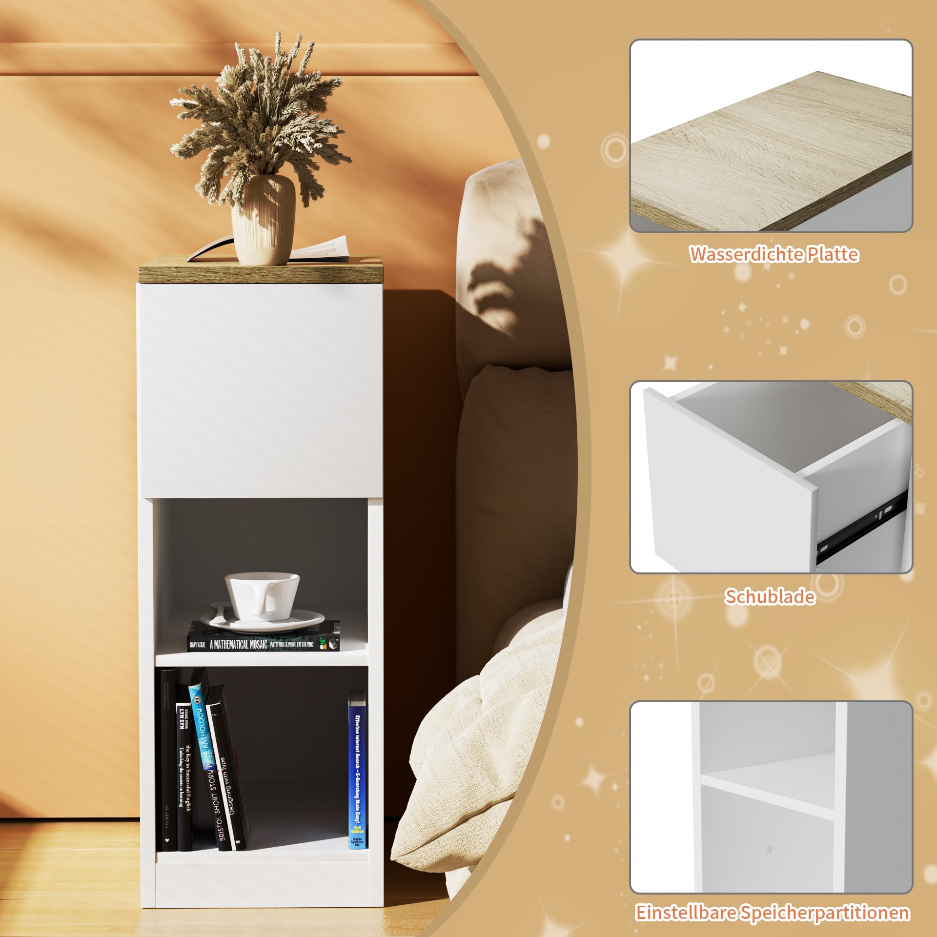 【Robust und langlebig】Hergestellt aus hochwertigem MDF-Plattenmaterial. Große Auswahl neuer und gebrauchter Nachttisch Schmal online entdecken bei 【Nachttisch 70 cm hoch】Produktgröße: 45x 25 x 70 cm(lang*Breite*hoch). VASAGLE Nachttisch 2er Set, schmal, Beistelltisch mit 2 【Agiles Design】2 offene Fächer und obere Schublade,die mehr Platz bieten, um Gegenstände griffbereit zu halten 【Vielseitig】 Der Nachttisch ist dank der detaillierten Anleitung schnell & leicht montiert. Nachttisch schmal 45x25x70cm, 2 offenen Ablagen und Schiebeschublade, Beistelltisch Rollen, Schmaler Kleiner Nachtschrank im Schlafzimmer, Nachtkästchen Platzsparend von EXSELTMAN. Beistelltische mit Rollen günstig online kaufen bei Möbel & Garten Modernes Design Sie können ihn als Beistelltisch, Wohnzimmertisch, Vitrine usw Woltu Nachttsch (2-St., 2er Set), schmal mt Schublade, 2 offenen Ablagen