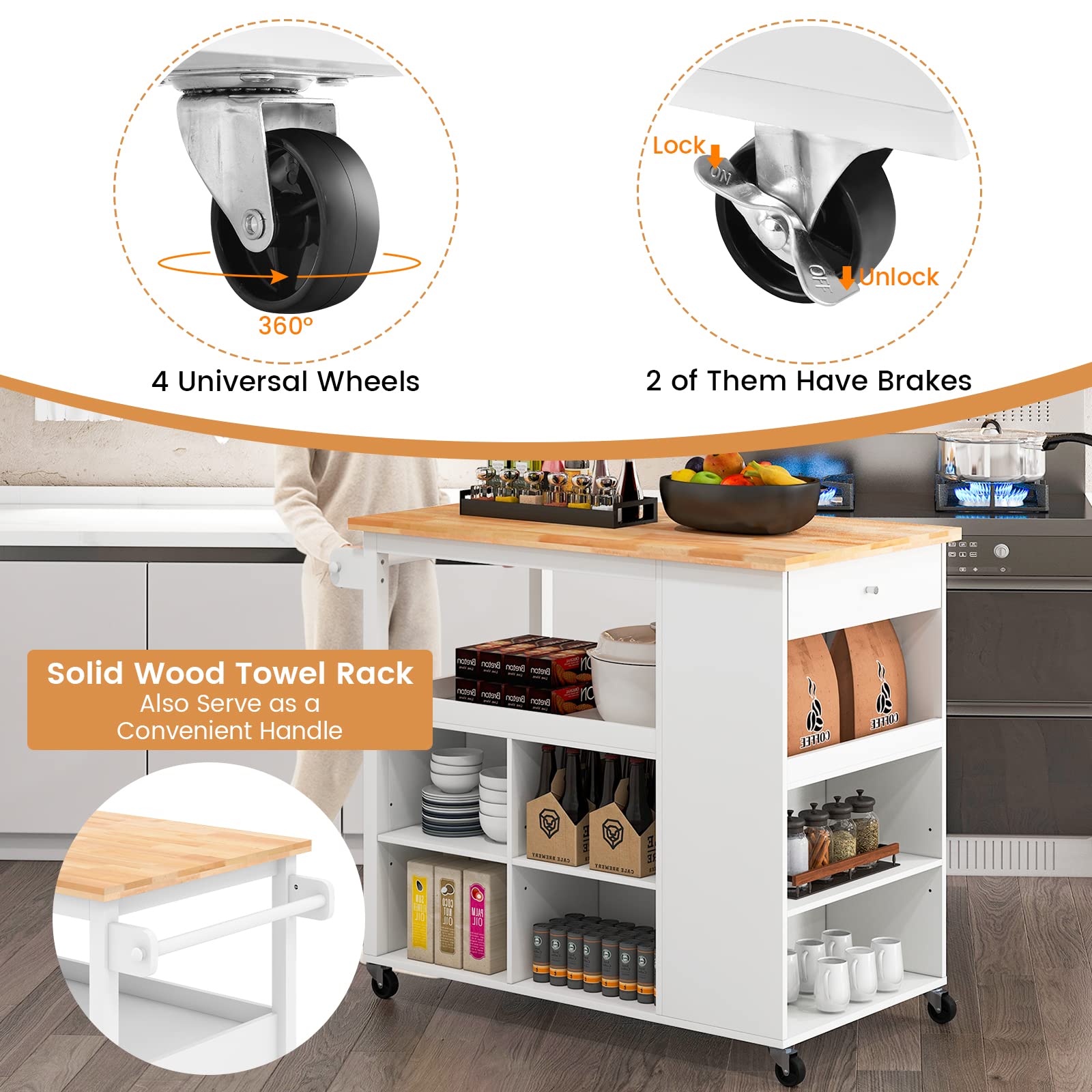 FCH Küchenwagen Servierwagen mit Darüber hinaus können die beiden Stangen des Seitenregals Gegenstände stabil halten, indem sie versehentliches Herunterfallen auf den Boden verhindern. Tischmaße: 80 x 40 cm (L x B) Nettogewicht: 24 kg. Tragfähigkeit des unteren Regals: 10 kg Tragfähigkeit des Seitenregals: 5 kg. Lieferumfang: 1 x Küchenwagen mit Rädern. Robustes und langlebiges Material – Unser Küchenwagen mit Rädern besteht aus hochwertigem technischem Holz, das über eine höhere Verschleißfestigkeit für eine langfristige Nutzung verfügt. Badezimmerschrank mit 2 Türen, Aufbewahrungstasche und offenem Regal... Vermeiden Sie scharfe Kanten und Gegenstände in der Nähe. 2 Rollen mit Bremse, um den Wagen bei Bedarf an Ort und Stelle zu befestigen Geeignet für viele Orte wie Wohnzimmer, Küche, Esszimmer usw. 🍽️ Viel Stauraum - Dieser Küchenwagen hat 2 große Schublade und einen Schrank mit Türen zur staubfreien Aufbewahrung von Utensilien, Geschirr oder kleinen Küchenmaschinen. Der Schrank und das untere Regal eignen sich zur Aufbewahrung von Getränken, Weinen, Besteck usw. Tragfähigkeit der Arbeitsplatte: 30 kg Tragfähigkeit des oberen Regals: 10 kg. Eigenschaften: Ausreichend Stauraum, um Gegenstände in Ordnung zu halten Ausgestattet mit 4 Universalrollen für freie Bewegung in jeden Raum. Die geräumige Arbeitsplatte bietet ausreichend Platz für Küchenutensilien. Mehrere Ablageflächen - Die geräumige Arbeitsplatte, der Mittelschrank (36 x 70 x 41 cm) und das untere Regal bieten viel Stauraum für Küchenutensilien, Besteck, Wein und vieles mehr. Universalrollen für flexible Bewegung: Dieser Küchenwagen ist mit 4 um 360 Grad drehbaren Rädern ausgestattet, damit Sie ihn ohne großen Aufwand problemlos überall hin bewegen können. Glatte Metallscharniere für ein bequemeres Öffnen Internes Gewürzregal für eine organisierte Umgebung Spezifikationen: Farbe: weiß, natürlich Material: MDF. Dieser rollende Küchenwagen besteht aus hochwertigen Materialien und hat eine lange Lebensdauer für den dauerhaften Gebrauch. GIANTEX Küchenwagen mit Arbeitsplatte, Küchenschrank auf Rollen, Servierwagen Holz mit Handtuchhalter, bewegliche Kücheninsel, Küchen Rollwagen mit 2 Schubladen, Küchentrolley Gemüsewagen (Kaffee) von GIANTEX. Servierwagen aus Holz günstig online kaufen bei Möbel & Garten und Haushalt Küche und Esszimmer Servierwagen GIANTEX Küchenwagen mit Arbeitsplatte, Küchenschrank mit Rollen, bewegliche Kücheninsel Holz, Servierwagen Küchenrollwagen Rollwagen mit Schublade, Küchentrolley 111 x 40 x 90 cm, Schwarz, BxHxT 111x90x40 cm ab€92.99 Merken Mit diesem mobilen Wagen werden Sie Ihre verschiedenen Aufbewahrungsbedürfnisse befriedigenfür eine ordentliche Küche. Sorgfältige Details: Die weichen Metallscharniere ermöglichen es Ihnen, die Schranktür leise zu öffnen und zu schließen, während die runden Türknäufe angenehm zu greifen sind.