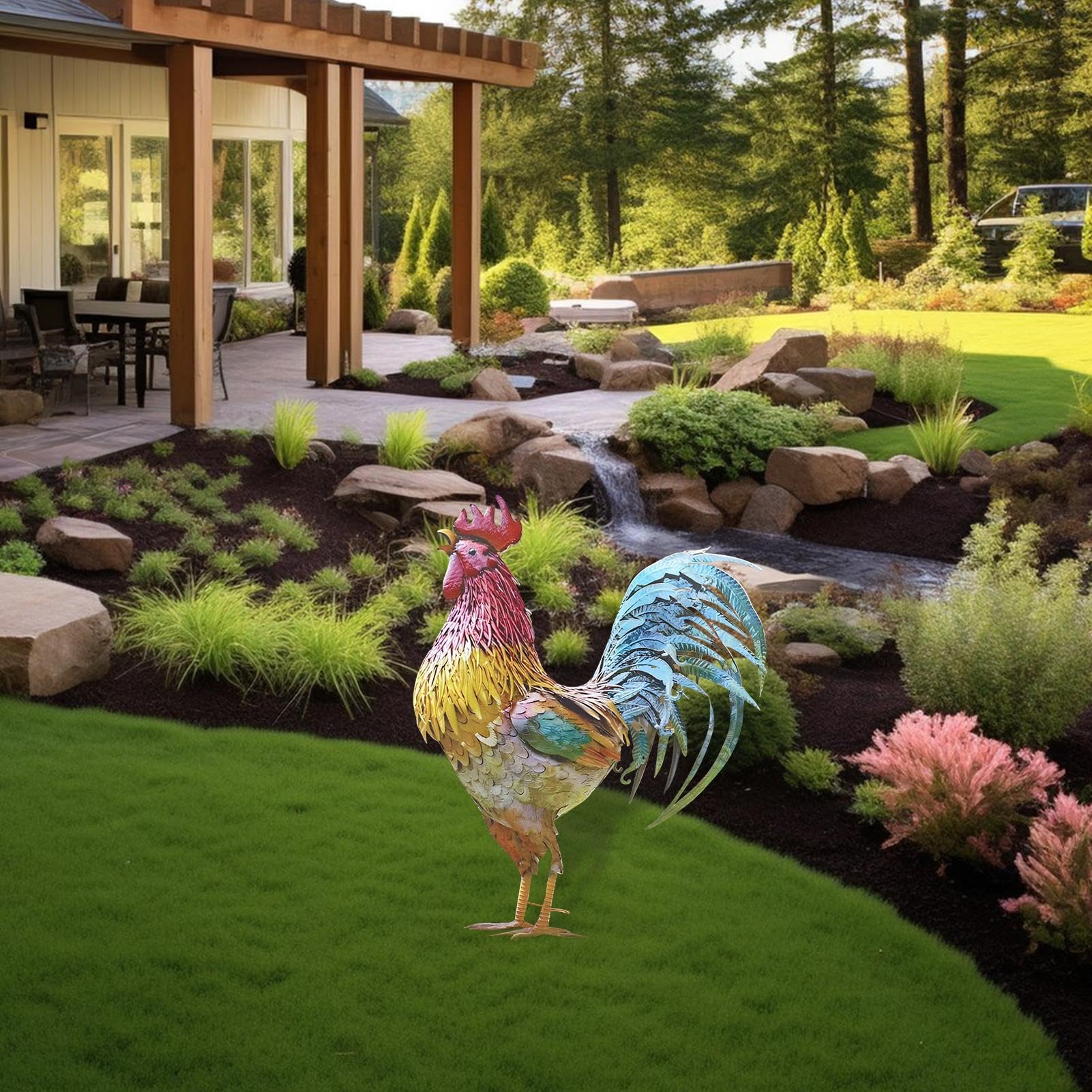 Shorayn Metal Rooster Statues, Outdoor Garden Statues, Metal Chicken Decor, G