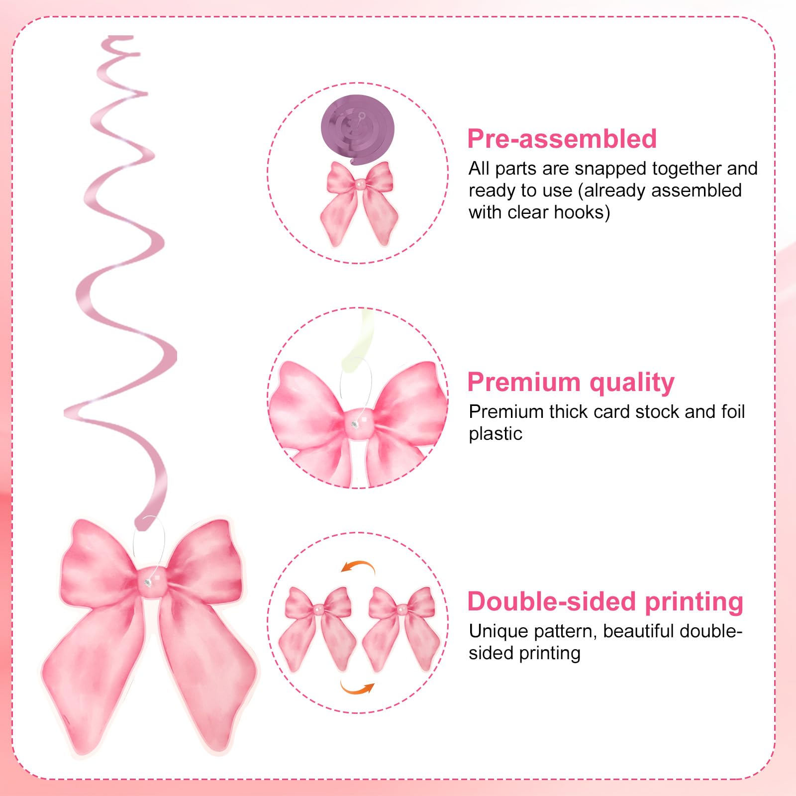Geburtstagsdeko Schleife Rosa Satinband Schleife Hängende Girlande, Schleife Party Hängende Dekorationen, Mädchen Schleifen Geburtstag Baby Shower Dekorationen, Knoten Binden Brautdusche Junggesellinnenabschied Dekor Schleifen Girlande Online verfügbar Happy Birthday Girlande 4 Stück Schleife Girlande Rosa Deko Baby Shower Geburtstag Party Baby Party Deko Warnhinweise Von offenen Flammen oder Wärmequellen fernhalten. Premium-Qualität: Hergestellt aus hochwertigem Folien-Kunststoff und Kartonpapier, mit feinem doppelseitigem Druck, robust und wiederverwendbar, verschiedene Formen von Ausschnitten bedruckt mit Schleifenmuster, niedlich und lustig, größere Ausschnittgröße, 100 % Handarbeit mit exquisiten Details ღ Vielfältige Anwendungsmöglichkeiten: Diese Schleifen-Kokett-Geburtstagsdekorationen sind perfekt für jede Art von Schleifen-Motto-Party, einschließlich kokettrosa Schleife, Geburtstagsparty, Hochzeit, Babyparty, Geburtstagsfeier, Brautparty, Babyparty, Junggesellinnenabschied, Party-Spiraldecken-Dekoration usw Rosa Elefant-Partydekoration - Elefant-Babyparty-Dekoration, Mädchen Was Sie bekommen: 20 Stück Set (vorbespannte 20 Stück Hängewirbel + 20 Stück Ausschnitt), verschiedene Schleifen-Ausschnitte in Rosa mit 7 Stilen, lustig und schick, bringen eine Extraportion Freude und Eleganz auf die Party Perfekt für alle Gelegenheiten: perfekte Ergänzung zu Ihrer rosa Schleife Party Dekor, Schleife Geburtstagsfeier, Babyparty, Knoten Brautparty, Hochzeit, Junggesellinnenabschied, um Ihren Raum hinzuzufügen, wenn Sie denken, dass es nur ein paar Schleifen mehr braucht