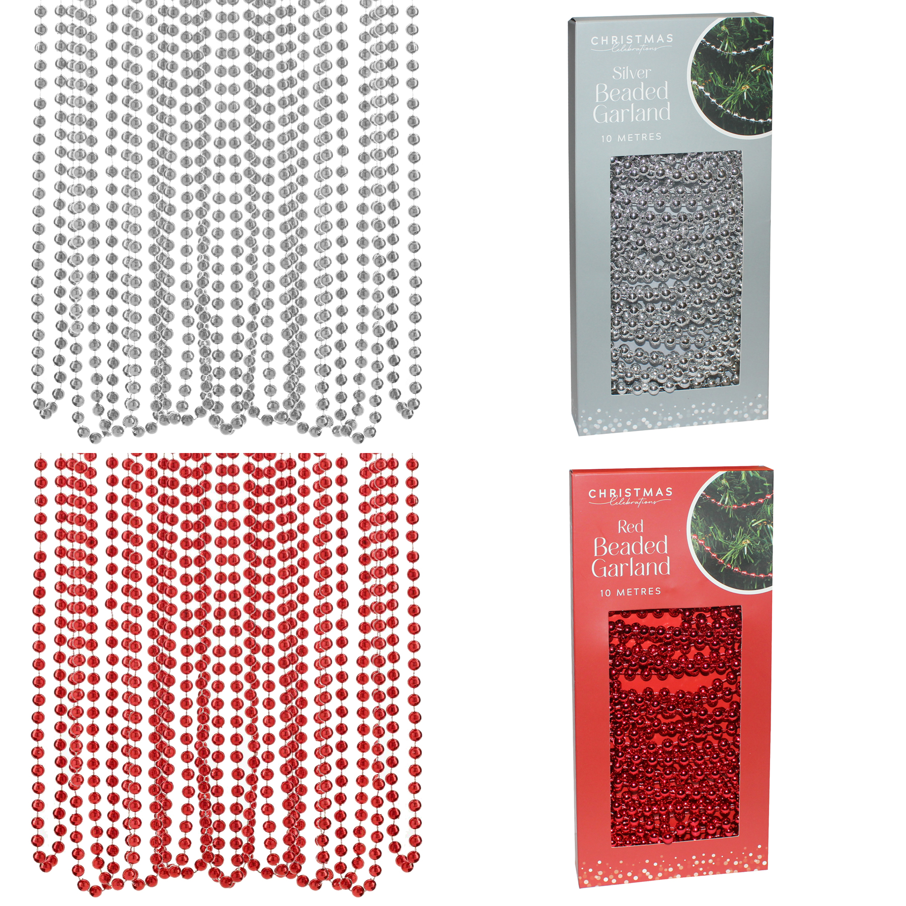 Waydress Weihnachtsbaum-Perlengirlande, Rot, Grün, Gold Und Silber, Gedrehte Perlen, Weihnachtsgirlande, Perlen-Lametta, 16 Stück, 4,5 M Lang, Kunststoff, Schwungform
