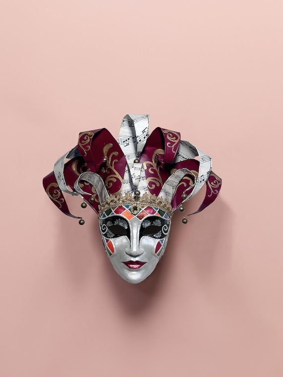 Rot Weiße Spaßvogel Maske - Venezianische Maske - Karneval In Rio Venedig - Buntes Gesicht