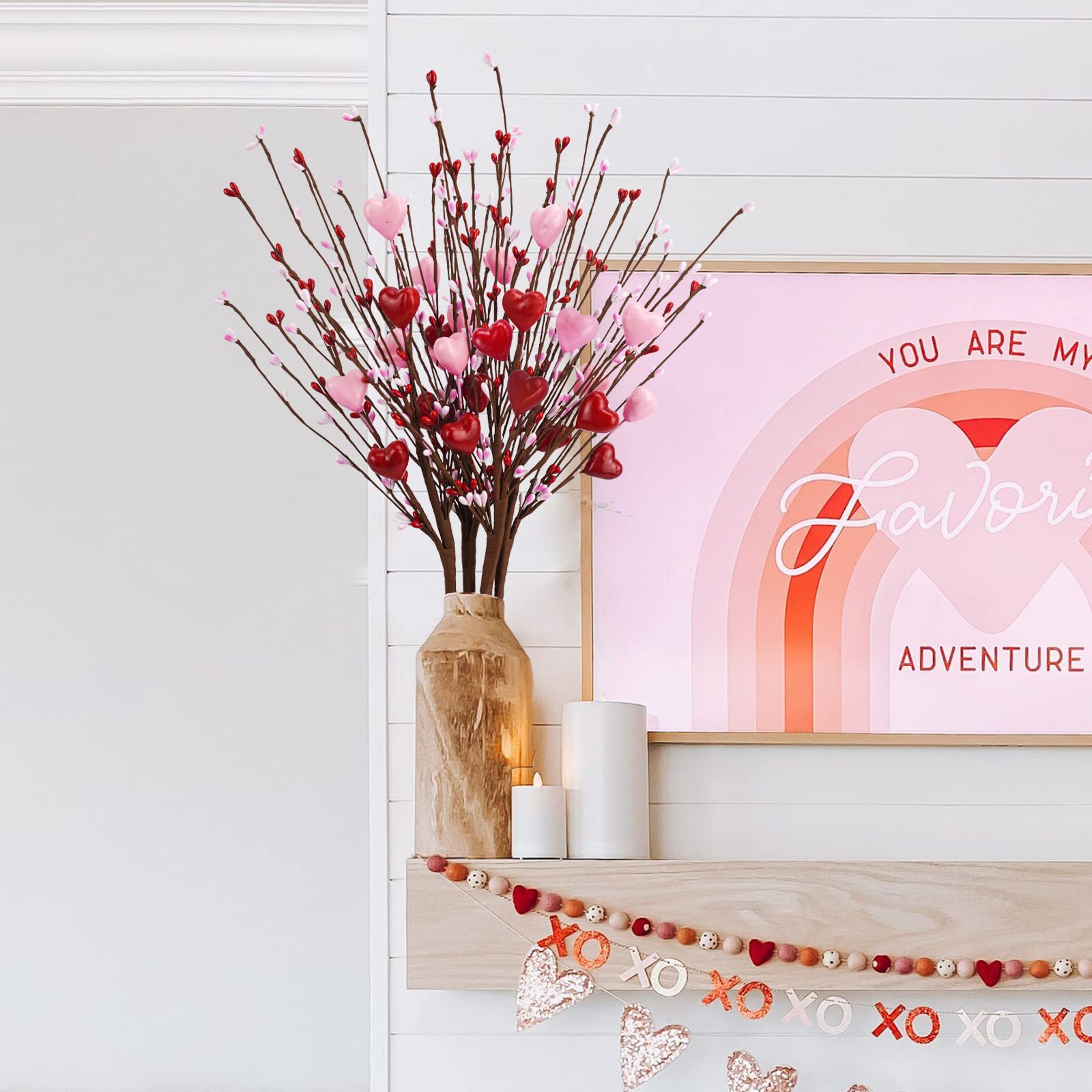 Yunlly 12 Stück Künstliche Rote Beerenstiele, 39 Cm, Rote Beeren, Herzförmig, Rote Beerenzweige, Künstliche Beerenzweige, Valentinstagsgeschenk Für Hochzeit, Zuhause, Vasendekoration (rot, Rosa