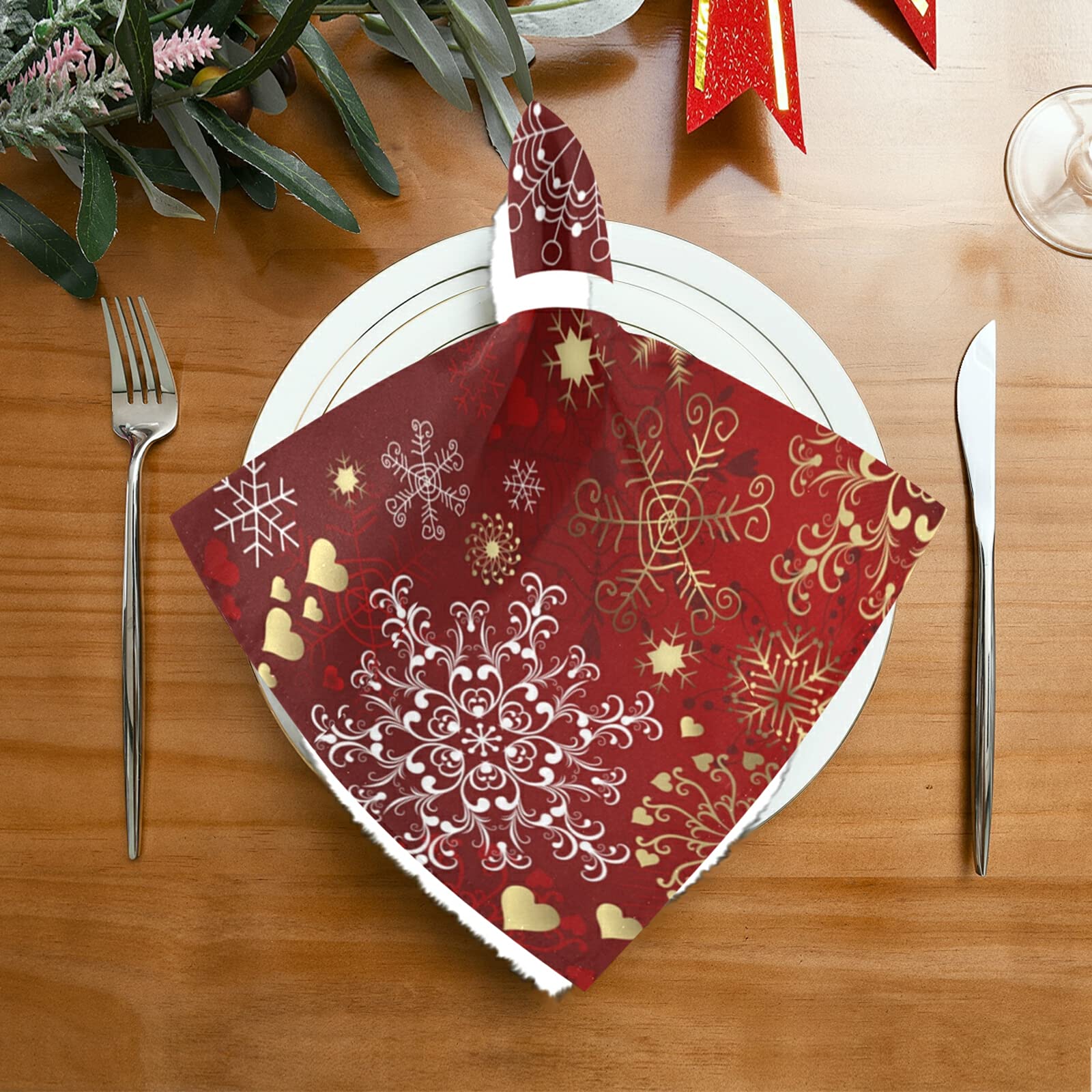 10/20 Stück 33 Cm 2-lagige Weihnachtliche Rote Schneeflocken-Papierservietten, Weihnachtskorationszubehör, Bedruckte Servietten Für Eis, Festival, Party