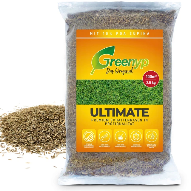 Mit der Mischung Gebrauchsrasen mit 35 % Poa supina (Mantelsaat) müssen Sie in diesen Bereichen nicht auf eine strapazierfähige Rasenfläche verzichten. Besonders bei Beschattung durch Laubgehölze kommt die hohe Qualität der verwendeten Gräser zum Tragen. Rasen Nachsaat 1kg - Rasensamen schnellkeimend aus Deutschland für 40qm Royal mit Poa supina, 10 kg, Rasensamen » Garden Shop Grassamen Mit Dünger Royal Mit Poa Supina, 10 Kg, Rasensamen » Garden Shop Poa Supina Gebrauchsrasen Zusammensetzung (geringe Veränderungen in der Saison möglich): 10 % Festuca rubra commutata CAPRICCIO (Horstrotschwingel) 8 % Festuca rubra rubra MAXIMA 1 (Ausläuferrotschwingel) 11 % Festuca rubra trichophylla PINATORE (Kurzausläuferrotschwingel) 10 % Lolium perenne DICKENS 1 (Deutsches Weidelgras) 10 % Lolium perenne CLEMENTINE (Deutsches Weidelgras) 8 % Poa pratensis BORSALA (Wiesenrispe) 8 % Poa pratensis YVETTE (Wiesenrispe) 35 % Poa supina SUPREME/SUPRANOVA MIX (Lägerrispe) Mantelsaat Aussaatmenge: 25 g / m² Schattenlagen zählen bekanntlich zu den Problemstandorten bei Rasenanlagen. Achten Sie jedoch auf eine angepasste Mähhöhe und sorgfältige Düngung. Sie erhalten 2,5 kg Rasenmischung Die pefekte Mischung für jeden Rasenverrückten Keimdauer von Poa supina ca., 21 - 28 Tage. Poa supina Samen Alles was Sie über diese Grasart wissen müssen... Finden Sie jetzt passende Produkte mit Which.One.