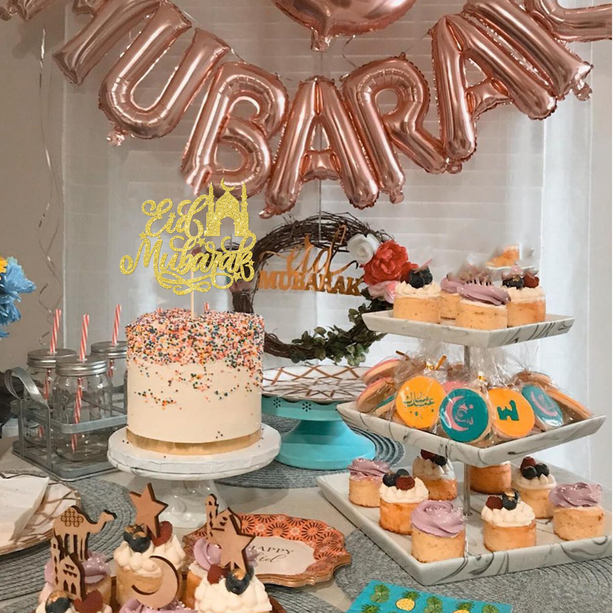 Rsstarxi 1 Packung Goldener Glitzer Eid Mubarak Tortenaufsatz Mond