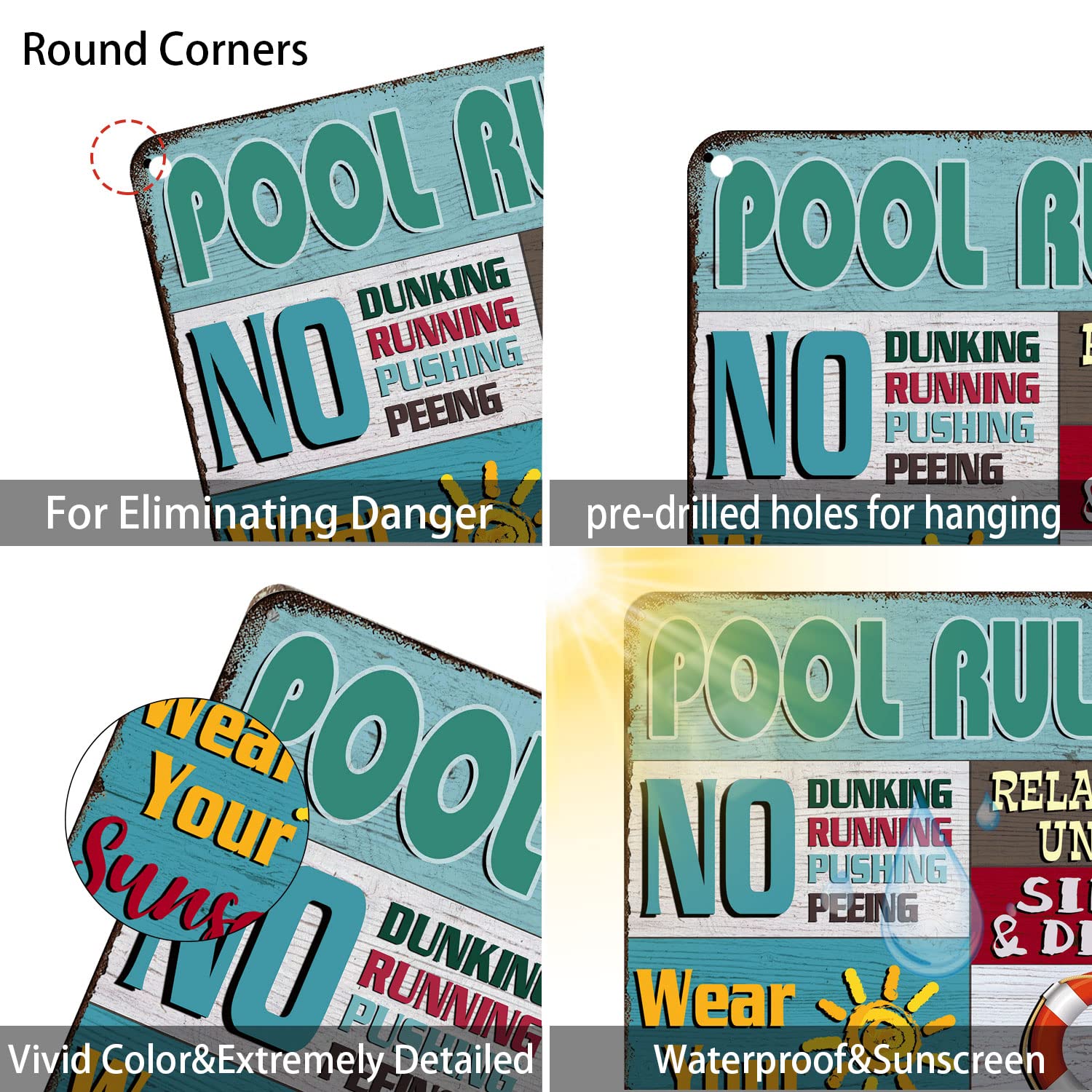 Das Vintage-Design verbessert die allgemeine Atmosphäre des Raumes Haustalk Metall-Blechschild Pool Rules Blechschild Vintage Pool Terrasse Wanddekoration Rettungsschwimmer ist wahrscheinlich betrunken, Hofschild Garage Bauernhof Garten Wanddekoration Schild Outdoor für Zuhause Zaun 20,3 x 30,5 cm Egal ob Sonne, Regen oder andere extreme Wetterbedingungen. Einfach aufzuhängen: Dieses leichte Metall-Blechschild hat 4 vorgebohrte Löcher und kann leicht auf jeder Oberfläche montiert werden und an Wänden, Türen oder Zäunen installiert werden. Das Blechschild ist aus hochwertigem Metall gefertigt und... Einfach aufzuhängen Dieses leichte Metall-Blechschild hat 4 vorgebohrte Löcher und kann leicht auf jeder Oberfläche montiert werden und an Wänden, Türen oder Zäunen installiert werden. 11. Sept. 2024 · Kaufen Sie 1 Stück, Blechschild mit lustigen Poolregeln, Vintage-Stil, für Pool, Terrasse, Wanddekoration, , Schwimmbadschild, Außendekor, 20,3 x 30,5 cm zum niedrigsten Preis bei Anwendung der Schilder: Poolbereich-Dekoration für den Außenbereich, ideal für Zuhause und Hof und zur Dekoration von Haus, Bar, Schwimmbad, See, Club, Restaurant, Strand, Café usw. Wunderbares Schild: Ein wunderbares Stück für Garage, Männerhöhle, Bar, Pub, Kaffeestation, Wohnzimmer, Schlafzimmer. Verleihen Sie Ihrem Badezimmer einen Hauch von Wandkunst., Lustige Badezimmer-Regeln. Vintage Pool Rules Metall Vintage Metall Blechschilder Retro Garage Schilder für Männer Wanddekorationen Alte Auto Shop Poster Öl- und Tankstelle Schild Man Cave Decor 20 x 30 cm Das dekorative Schild ist aus hochwertigem Aluminium-Metall, kein billiger Kunststoff. Deko Pool Vintage Metallschild Pool Rules Blechschild Vintage Pool Terrasse Schwimm Deko Garantie Wir bieten Qualität After-Sale-Rückerstattung und Rückgabeservice.