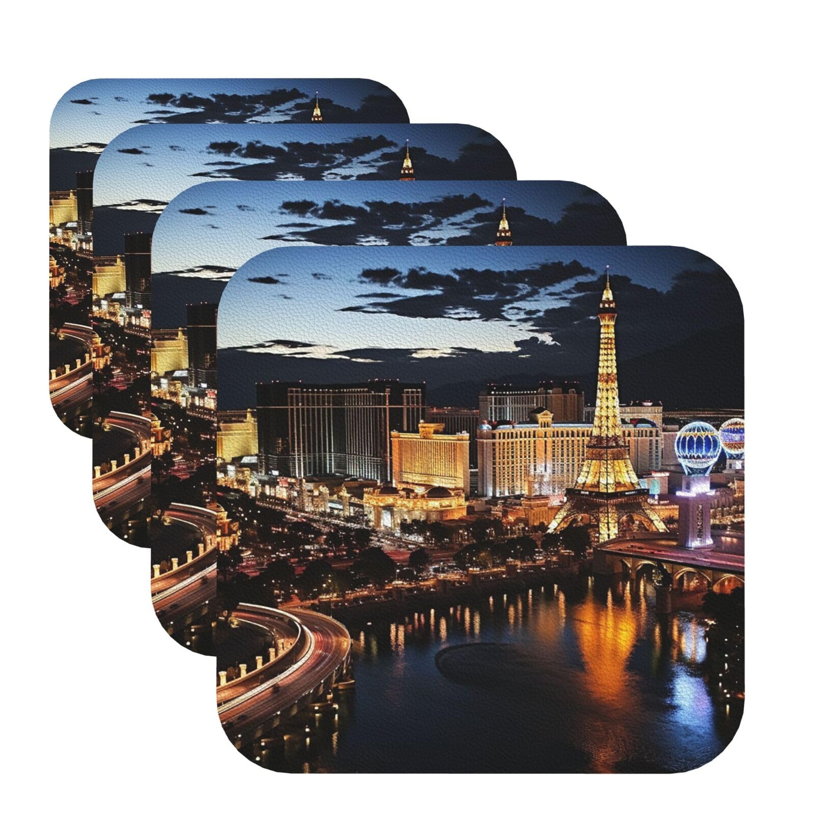 Las Vegas Pokerchip-Untersetzer, Rund, Metallisch, Glänzend, 4 Stück