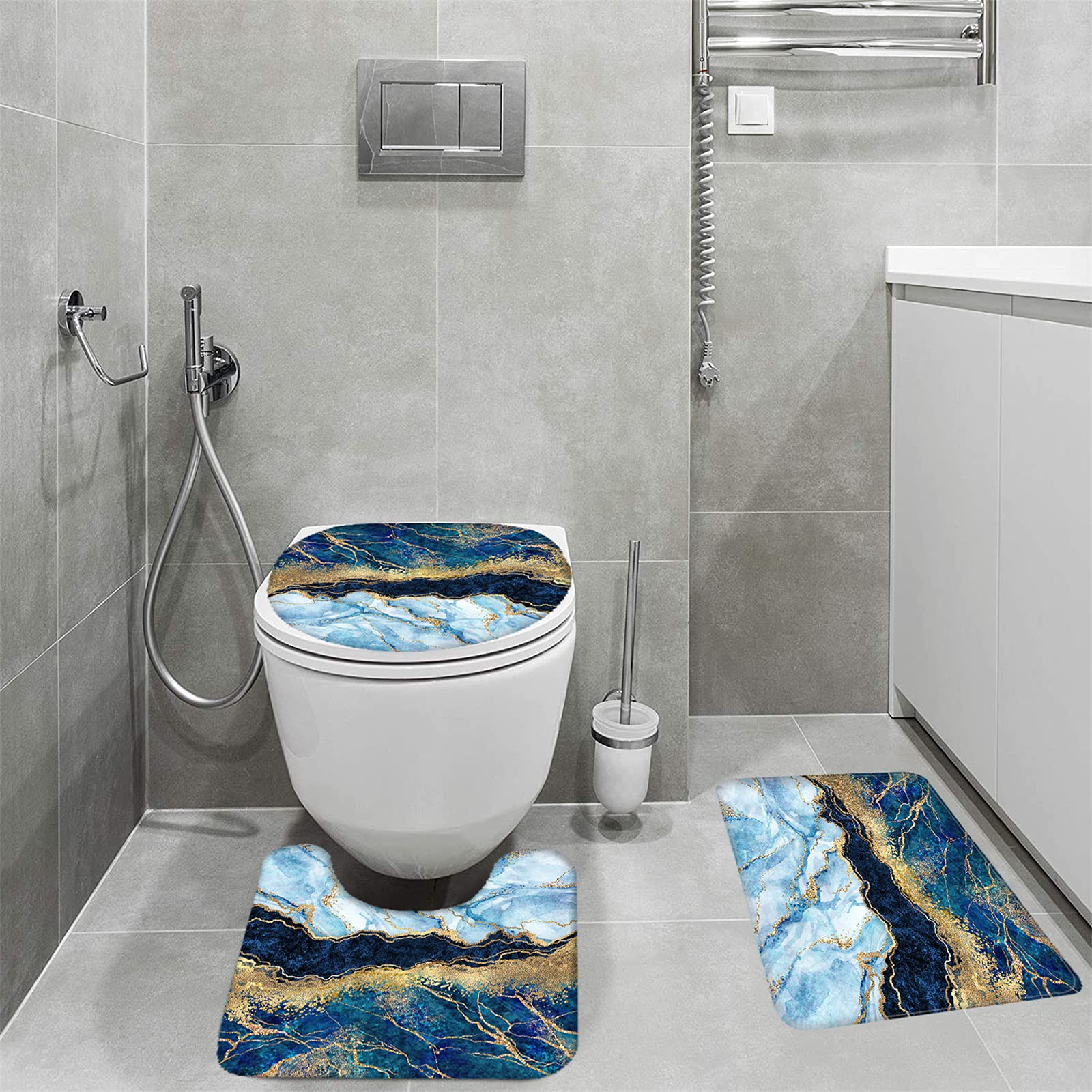 Schwarzer Marmor Alphabet Duschvorhang besteht aus 100% Polyestergewebe, das verhindert, dass Wasser aus dem Badezimmer spritzt und Ihr Zuhause sauber und frisch hält. Schwarzes Marmor-Duschvorhang-Set, schwarz-goldenes Familien-Marmor-Buchstabenmuster, 1 Duschvorhang, 1 Badematte, 1 U-förmige Sitzmatte, 1 WC-Deckelmatte, 12 Haken. 【Einfach zu bedienen und zu pflegen】Duschvorhang hat 12 Haken, einfach zu installieren, Zeit und Mühe sparen, einfach aufzuhängen und zu demontieren. Einzigartiges Design: Schwarz-goldener Marmor-Buchstaben-Duschvorhang-Set mit fortschrittlicher High-Definition-Druckteppichtechnologie, das Bild ist klar und lebendig, verblasst nicht, Polyestergewebe, kein Geruch, schön und großzügig, macht Ihr Zimmer frischer. 【Premium-Material】 Schwarzer Marmor Alphabet Duschvorhang besteht aus 100% Polyestergewebe, das verhindert, dass Wasser aus dem Badezimmer spritzt und Ihr Zuhause sauber und frisch hält. 4-teiliges Duschvorhang-Set Mit Rutschfestem Badezimmerteppich Und WC-Deckelbezug, Marmor, Abstrakte Kunst, Schwarz, Grau, Goldfarben, Wasserdicht, Badvorhang, Dekor-Zubehör Mit Haken Die rutschfeste Badematte und der U-förmige Teppich sind aus hochwertigem Flanell. Rutschfeste Unterseite hält den Badteppich an Ort und Stelle, damit Sie ein angenehmes Duschen genießen können Der schwarze Duschvorhang mit Marmormuster verwendet fortschrittliche HD-Drucktechnologie, das Bild ist klar, verblasst nicht, Polyestergewebe, kein Geruch, schön und großzügig, macht Ihr Zimmer frischer. Ein 4-teiliges Duschvorhang Set besteht in der Regel aus einem Duschvorhang, Duschringen oder -haken, einer Anti-Rutsch-Matte und einem passenden Badteppich. Beim Kauf sollten Sie auf die Maße des Vorhangs achten, um sicherzustellen, dass er zu Ihrer Dusche passt Sie sind bequem, strukturiert und rutschfest. Der Duschvorhang hat 12 Haken, einfach zu installieren, spart Zeit und Mühe, einfach aufzuhängen und zu demontieren. Schwarzer Marmor Buchstabenmuster Duschvorhang Größe:71 x 71 Zoll, Badematte Größe:29,5 x 17,3 Zoll, Toilettendeckel Größe:17,3 x 15,0 Zoll, U-förmiger Teppich Größe:18,1 x 15,4 Zoll. Sie können problemlos jede Dusche / Badewanne in Standardgröße installieren und gerade oder gebogene Duschstangen verwenden Dieses luxuriöse und elegante Duschvorhang-Set passt in die meisten Badezimmer Der Badezimmerteppich besteht aus Polyester und Flanell. 4-teiliges Duschvorhang-Set, Marmor, 177.8x177.8 cm, luxuriöse 【Größeninformationen】: Schwarzer Marmor Buchstabenmuster Duschvorhang Größe: 180,3 x 180,3 cm, Bademattengröße: 75 x 44 cm, WC-Deckelgröße: 44 x 38 cm, U-förmiger Teppichgröße: 46 x 39 cm. Einfache Installation in Ihrem Badezimmer, Wohnung, Hotel, Schlafsaal und anderen Sichtschutzorten. Dieses luxuriöse und elegante Duschvorhang-Set passt in die meisten Badezimmer.