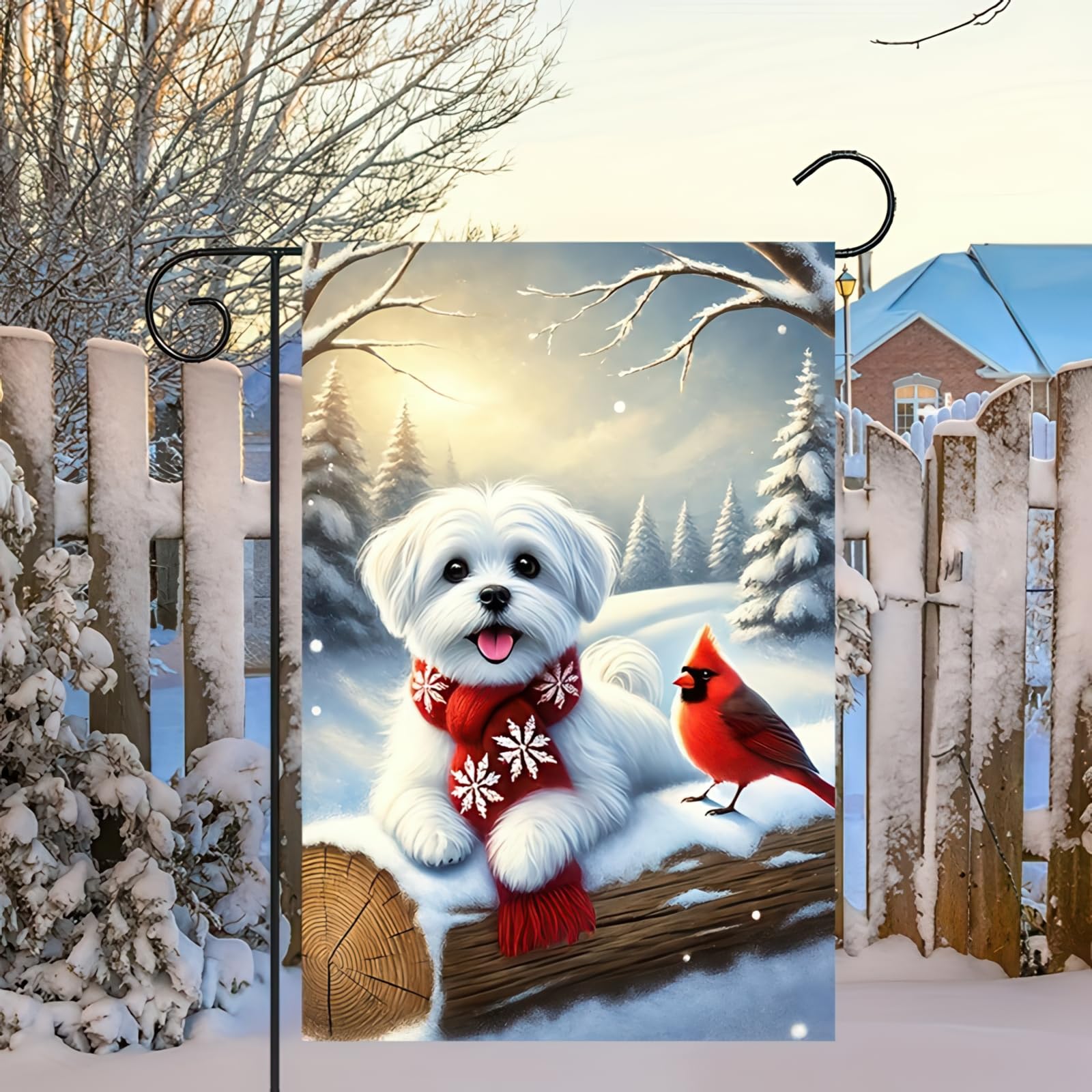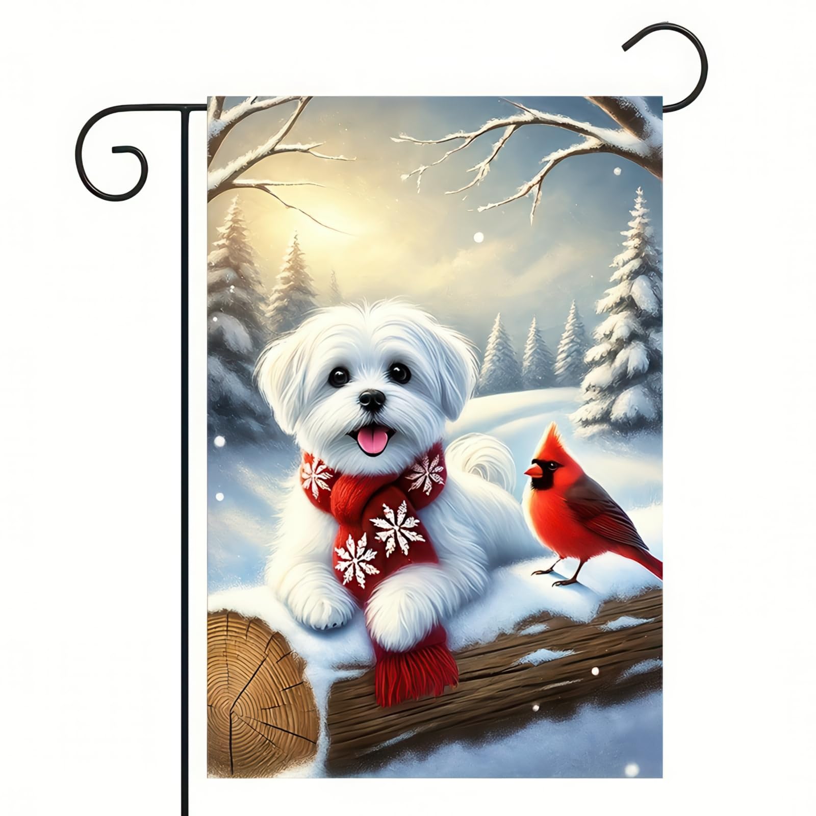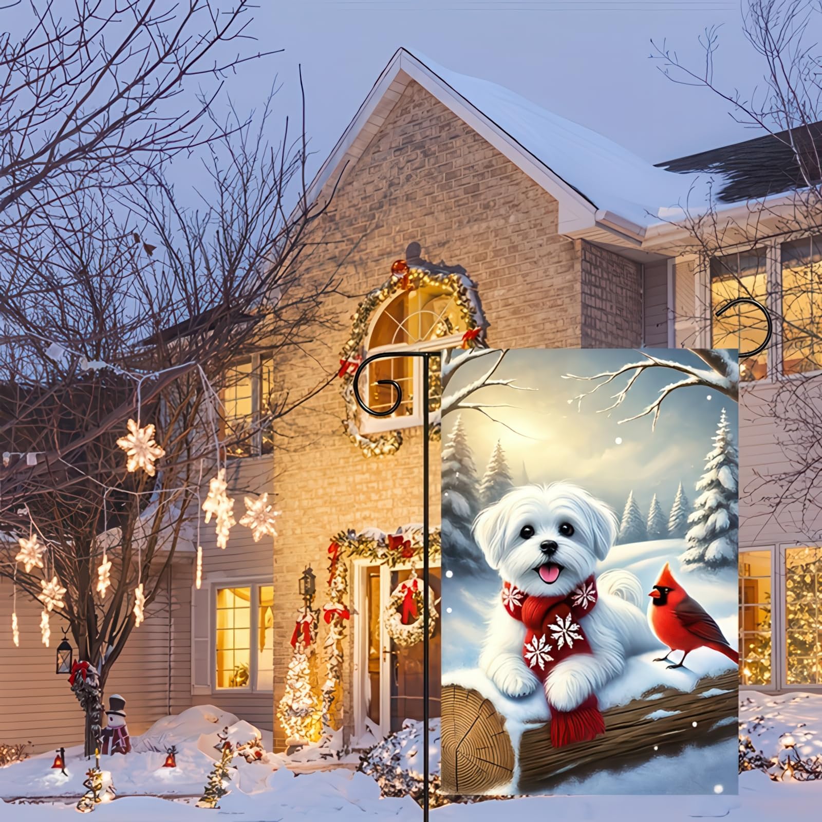 Winter-Gartenflagge Mit Süßem Hund Und Kardinal-Weihnachtshund, 30,5 X 45,7 Cm, Doppelseitig, Frohe Weihnachten, Gartenflagge Für Außendekorationen, Hofflagge