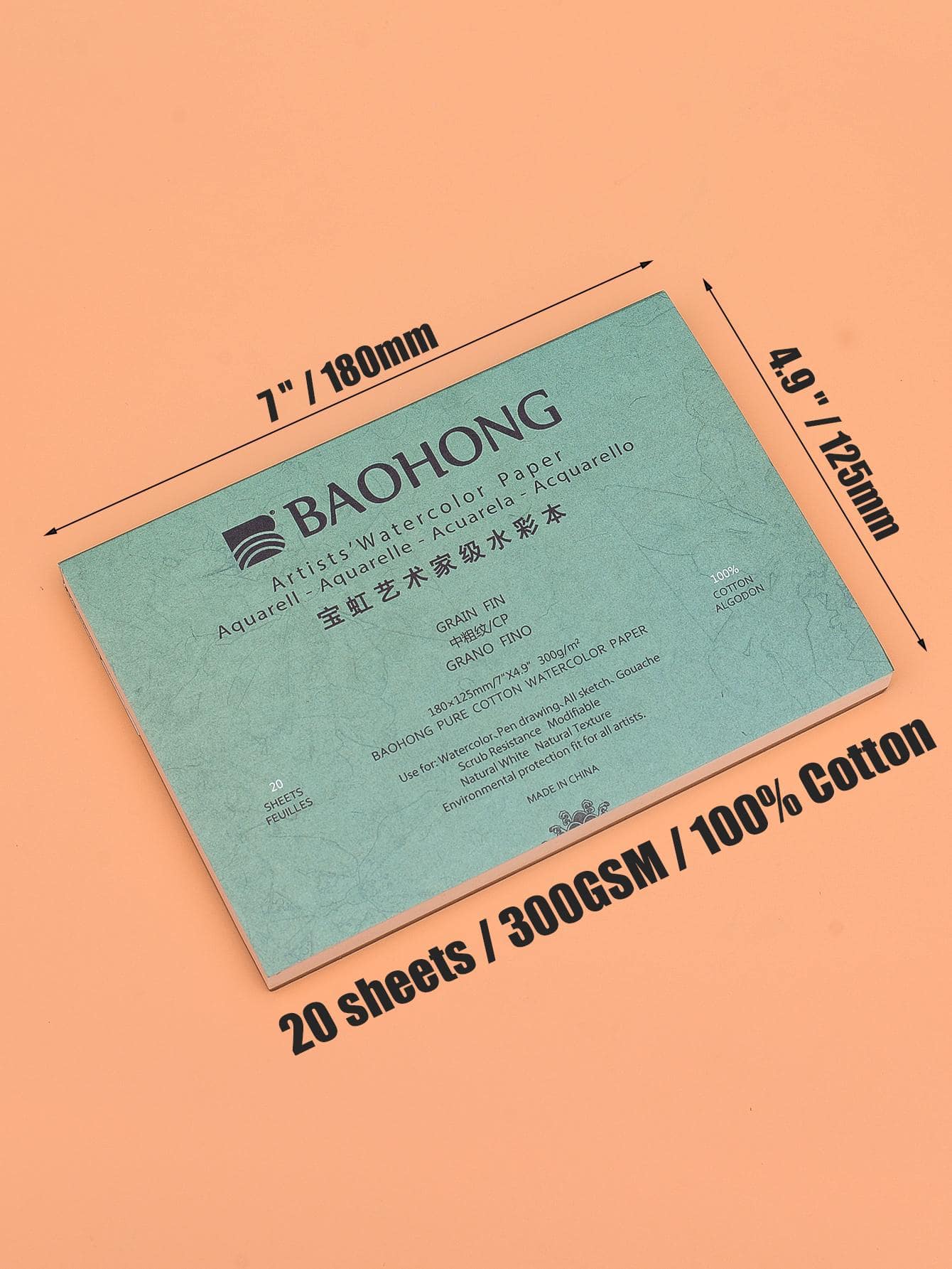 Baohong Acamy Aquarellblock, 20 Blatt, Säurefrei, 300 G, 140 Pfund