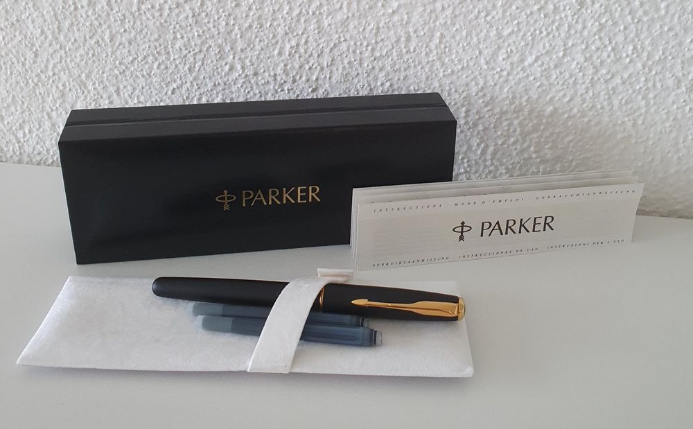 Die edle, sorgsam polierte mittelstarke Feder aus 18-karätigem Massivgold in zwei Farbtönen wird manuell zusammengesetzt und akribisch geprüft Mit seiner Kombination aus beeindruckender Handwerkskunst und zeitlosem Stil erfüllt der Parker Duofold seit 1921 die höhere Qualitätsansprüche. Parker Duofold Classic Füller | Schwarz mit goldbeschichteten Zierteilen | Größe Centennial | Füllfederhalter mit feiner Feder aus Massivgold | schwarze Tinte und Konverter | Geschenkbox Parker Duofold Prestige Füller Produktübersicht: Clip Rechts-/Linkshänder geeignet für professionelles Schreiben Federmaterial vergoldet rhodiniert Produktdetails Ähnliche Produkte: 119 Parker Füller 2 Varianten ab 602,00 Montblanc Füller Parker S0809120 Sonnet-Füllfederhalter (Ausführung Stainless Steel It Parker Fountain Pen Die Feder aus Massivgold wird von Hand zusammengesetzt und poliert, damit höhere Schreibkomfort und eine absolut präzise Linienführung gewährleistet sind. Jedes Duofold-Schreibgerät wird aus einem gegossenen Acrylblock hergestellt und in Handarbeit vollendet Dank der liebevollen Fertigung aus samtschwarzem Edelharz im Emaille-Look sowie der eindrucksvollen Verzierungen aus 23-karätigem Gold verleiht der Parker Duofold Ihrem Büro das gewisse Etwas an Eleganz. Der mit Edelmetallen verzierte Duofold bietet ein außergewöhnlich angenehmes, exquisites Schreiberlebnis Jeder Parker Duofold wird mit höhere Präzision aus einem handgegossenen Acrylblock hergestellt und in Handarbeit vollendet. Jeder Parker Duofold wird mit höhere Präzision aus einem handgegossenen Acrylblock hergestellt und in Handarbeit vollendet. Die Feder aus Massivgold wird von Hand zusammengesetzt und poliert, damit höhere Schreibkomfort und eine absolut präzise Linienführung gewährleistet sind ParkerShop-Originalprodukte von Parker, Parker-Füller, Parker-Tintenroller, Parker-Feder, Parker-Kugelschreiber, Parker-Tinte, Parker-Patronen, Parker-Minen