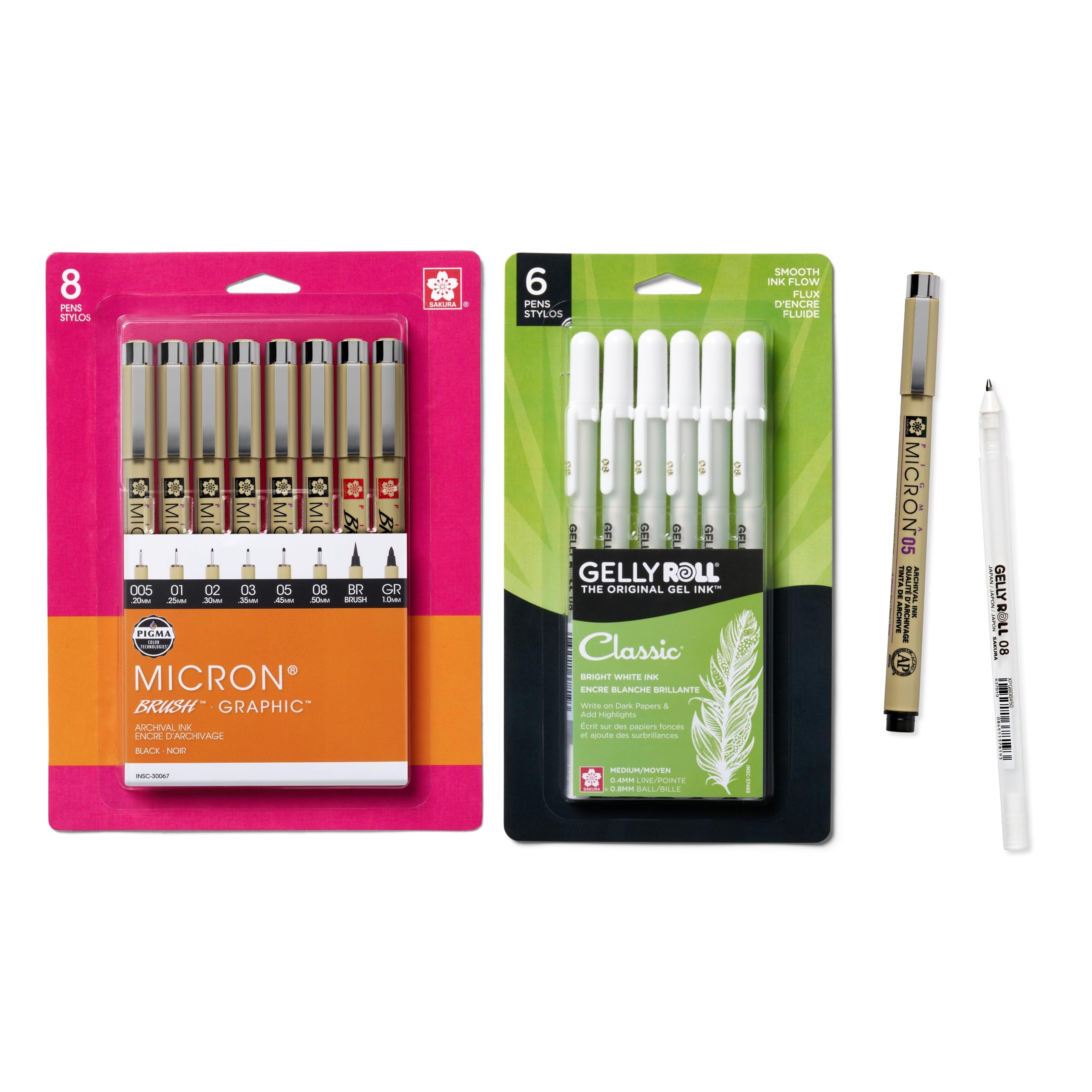 SAKURA Pigma Micron Fineliner & Gelly Roll Klassische Weiße Stifte – Zum Schreiben, Zeichnen Oder Journaling – Verschiedene Punktgrößen – 8 Schwarze Mikron Und 3 Weiße Gelschreiber
