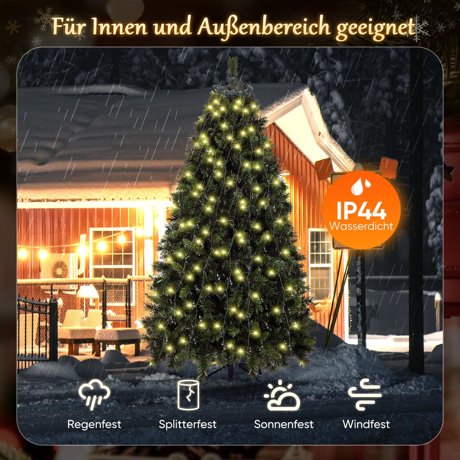 【Wasserdicht & Spritzwassergeschützt】IP44, LED Lichter hergestellt aus wasserdichtem material, daher geeignet für den Innen- und Außenbereich. Beleuchten Sie Ihre Festtagsstimmung!, Unsere LED-Lichterkette ist nicht nur optisch ansprechend, sondern bietet auch zwei praktische Steuerungsmöglichkeiten: per Fernbedienung und über den Netzschalter! 【2m*12 Girlanden Weihnachtsbaum】(Für 1,5m-2,4m baum) Lichterkette LED 31V Sicherheitsnetzteil + 5m Stromkabel, 420er LED; Lampenabstand: 6cm SALCAR Weihnachtsbaum Lichterkette mit Fernbedienung 【Dimmbare & Timer Fernbedienung】Ausgestattet mit einer IR fernbedienung, mit der Sie den Modus (8 modus) und die Uhrzeit frei einstellen können(6 Stunden einschalten, 18 Stunden ausschalten). Verleihen Sie Ihrem Weihnachtsbaum einen Hauch von Farbe! Weihnachtsbaum Lichterkette Innen SALCAR 2m Christbaumbeleuchtung, Weihnachtsbaum Lichterkette Lichterkette Tannenbaum LEDs versiegelt mit Leim-Feed-Technologie: Spritzwassergeschützt und Frostsicher. Dank des Kupferdrahts rosten die Enden der LED´s kaum, was die Lebensdauer der Leuchten erhöht 1 HELLIGKEITSSTUFEN 2 WASSERGESCHÜTZT 3 SPEICHERFUNKTION 4 SICHER IN DER ANWENDUNG SALCAR 2m Christbaumbeleuchtung, Weihnachtsbaum Lichterkette mit 10 Girlanden und 1 Weihnachtsbaumspitzestern, 210 LED Lichterkette für Baum Der Speicherchip speichert Ihre letzte Modus-Einstellung, sodass Sie den Modus nicht jeden Tag zurücksetzen müssen Salcar LED-Lichterkette (2025) zum Bestpreis
