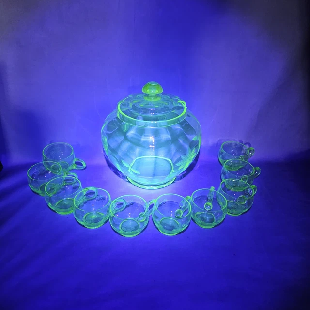 URANGLAS PUNSCH SET Antik Schüssel Gläser Bowleset 20er 30er Jahre Art